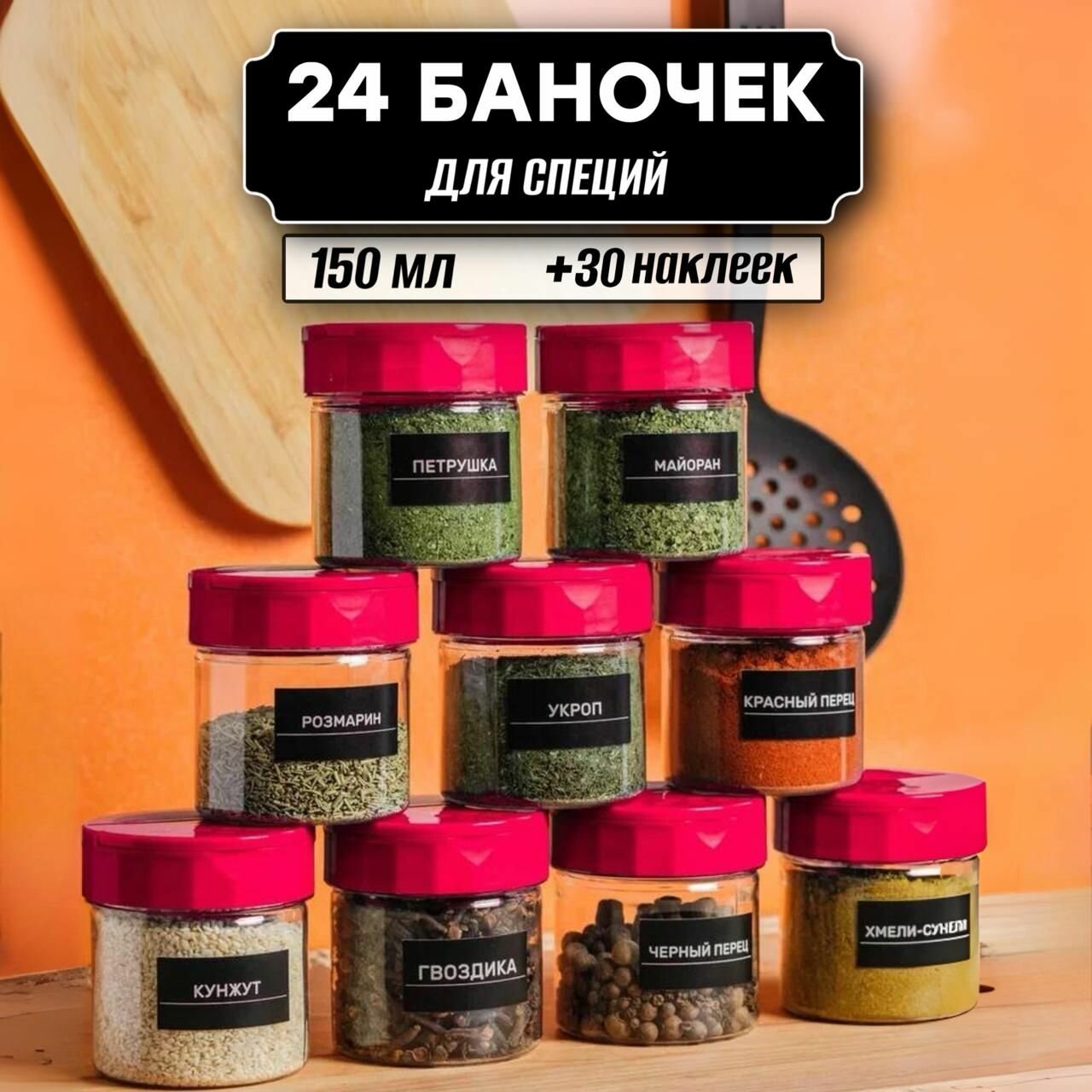 СохранитьБаночки для сыпучих специй и приправ 150 мл 24 шт, ( красные крышки и наклейки в комплекте ) интересное: