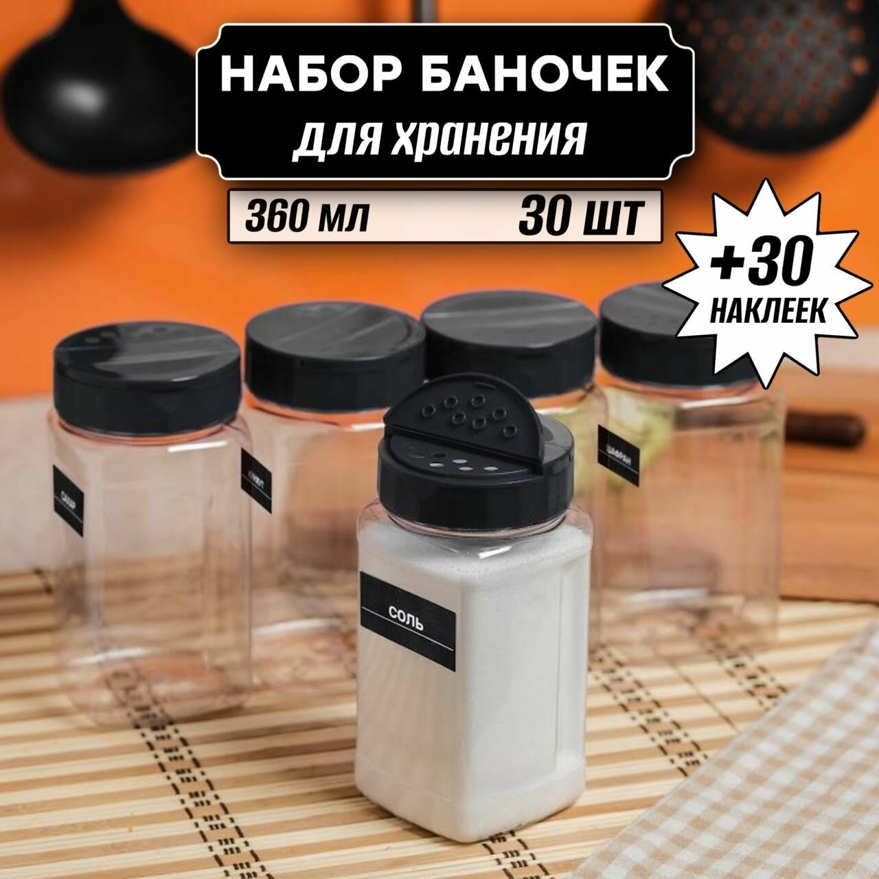Набор для сыпучих специй с наклейками 360 мл 30 шт, ( крышки с дозатором в комплекте )