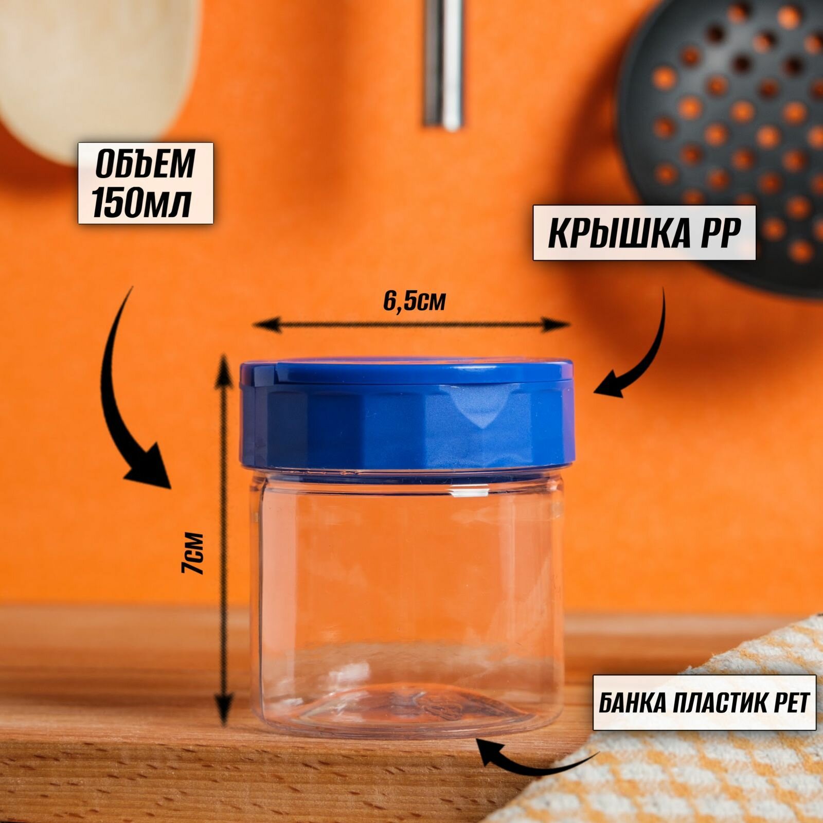Баночки для специй и приправ 150 мл 24 шт, ( синие крышки с наклейками в комплекте )