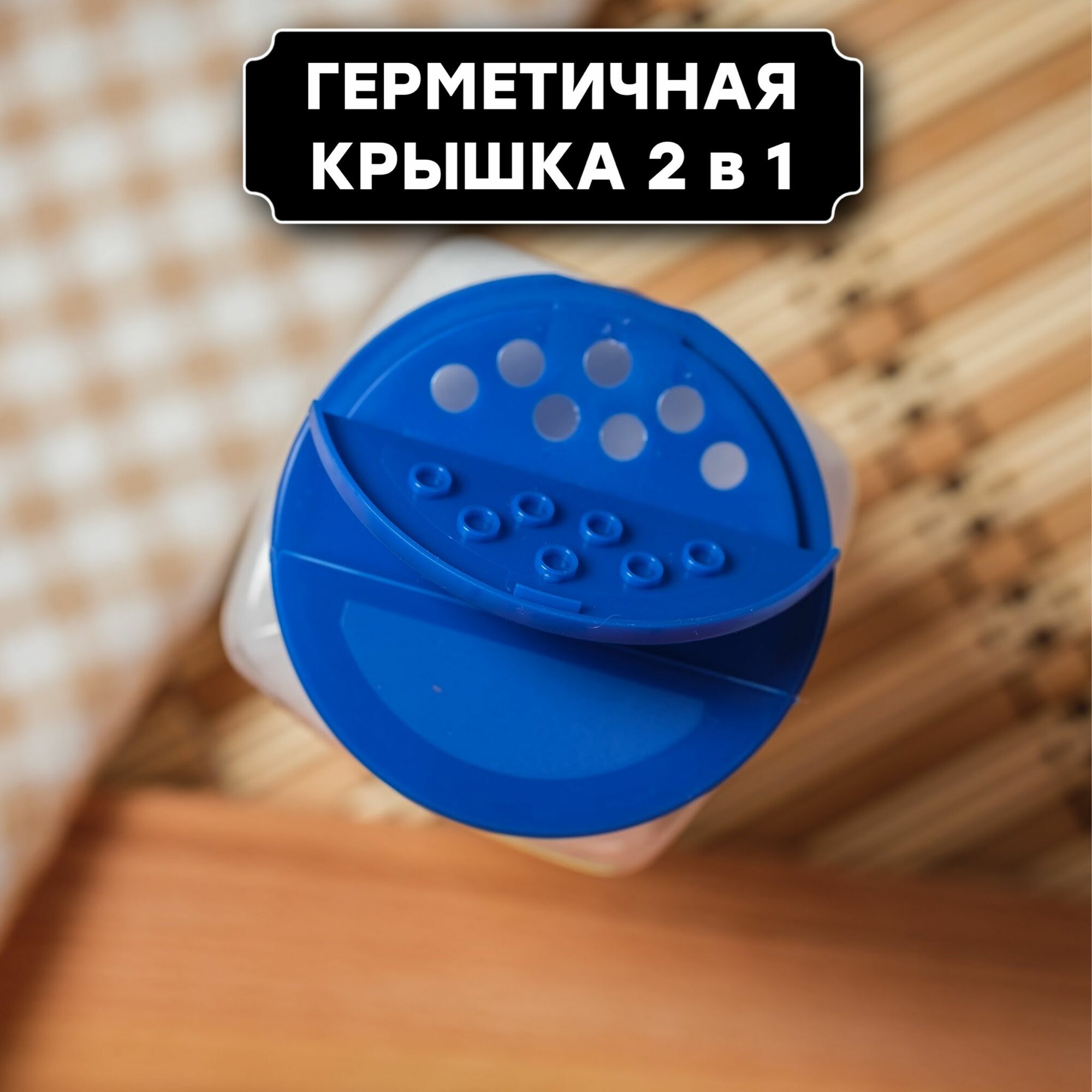 Набор для специй с наклейками 360 мл 9 шт, ( синие крышки с дозатором в комплекте )