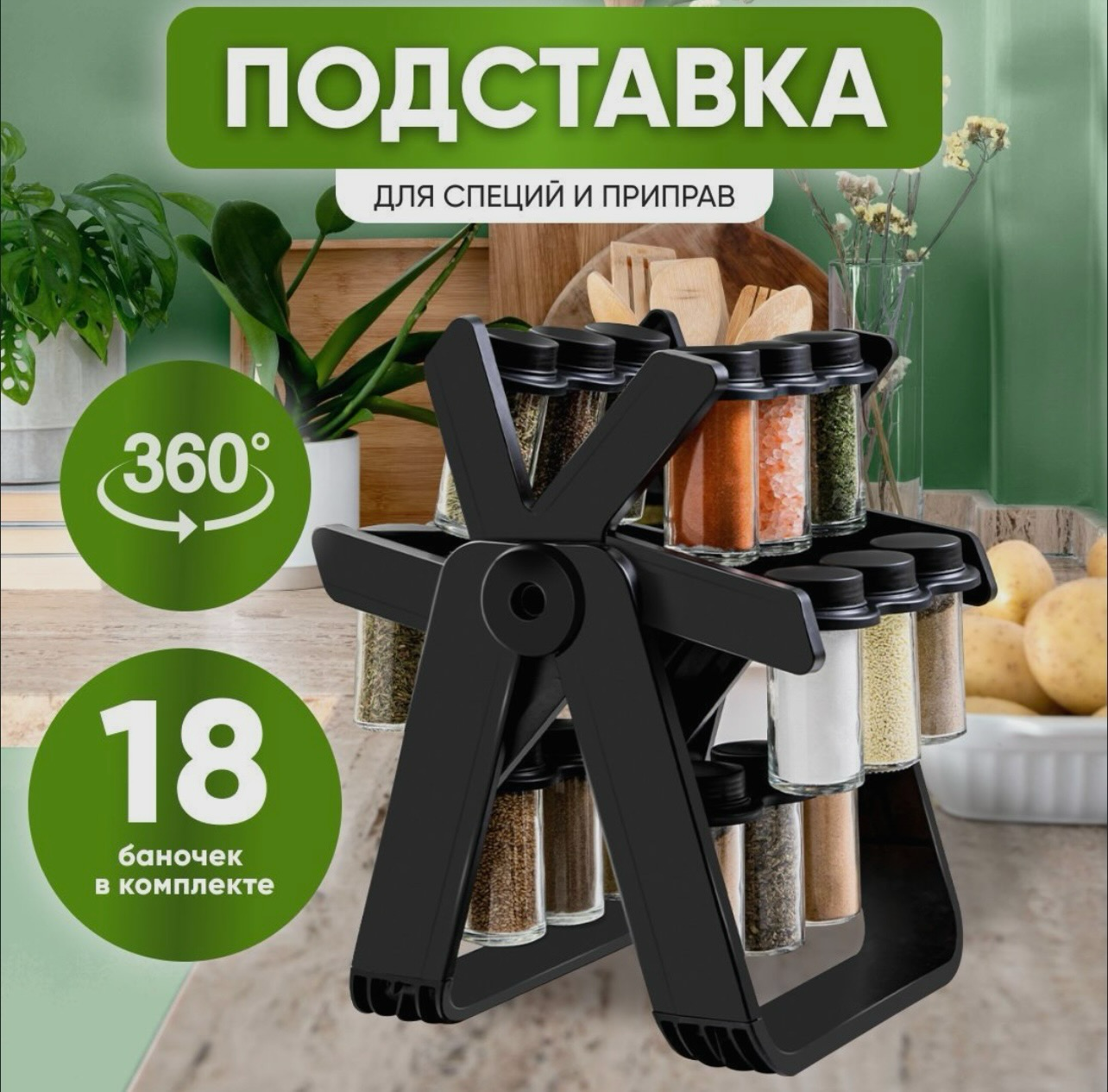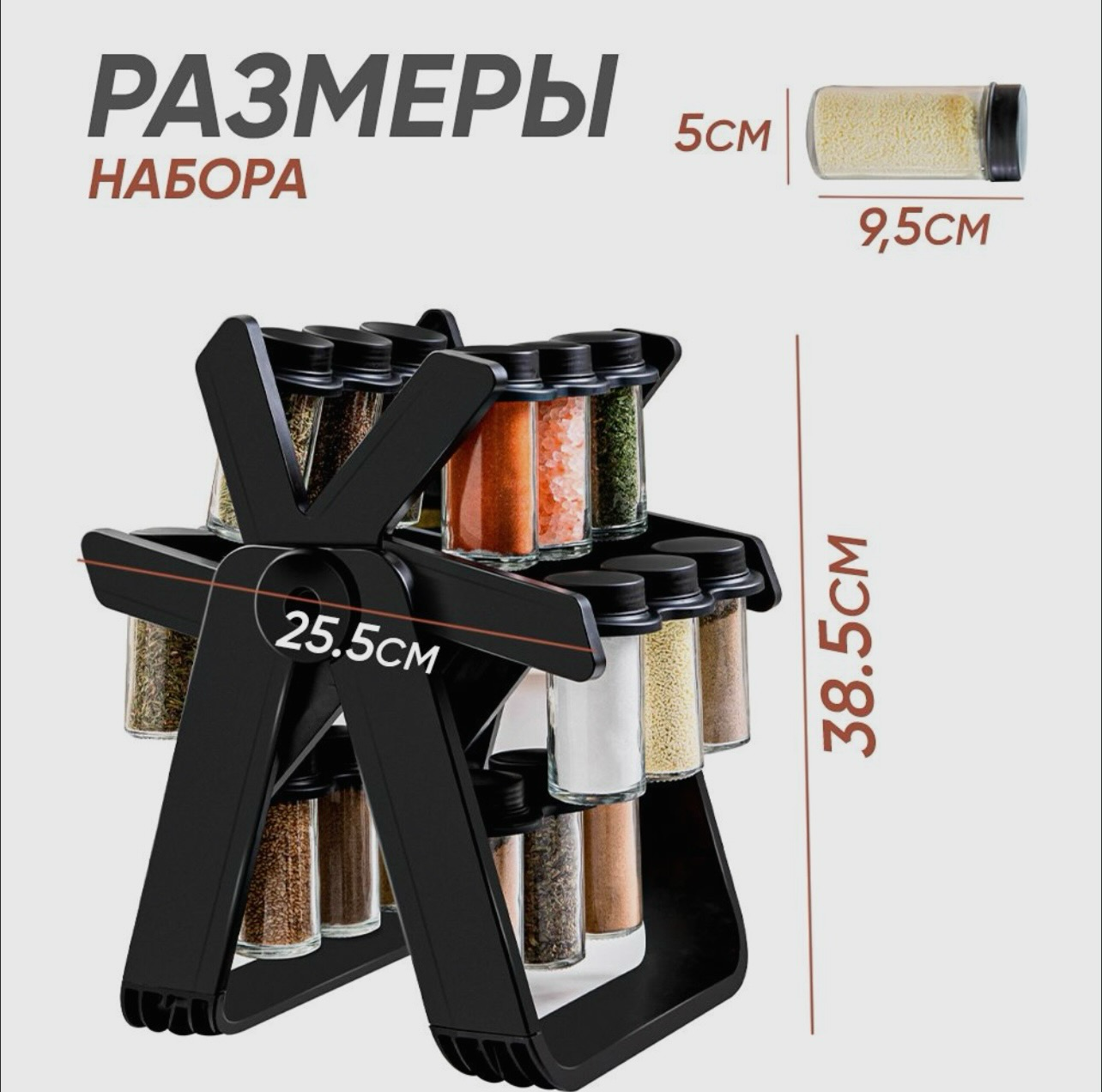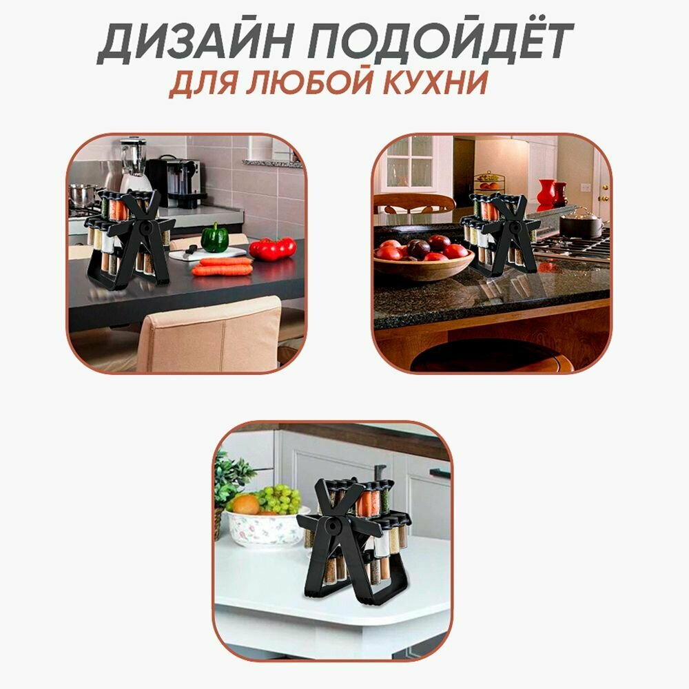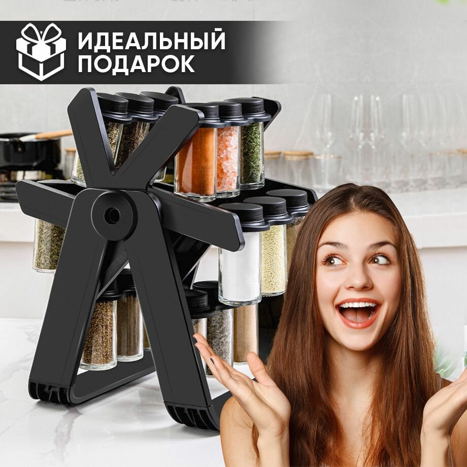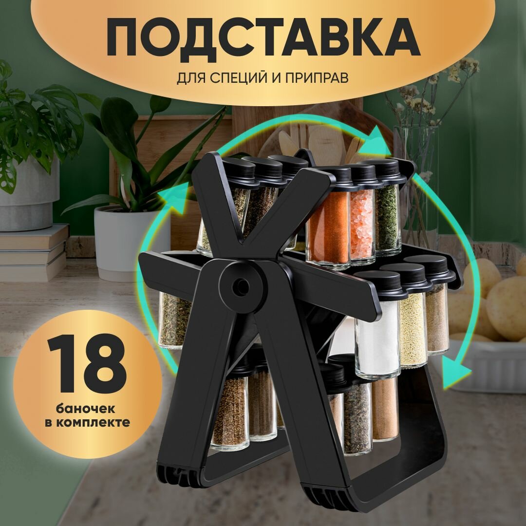 Набор баночек для специй и приправ, черная, на подставке (18 шт.) интересное: