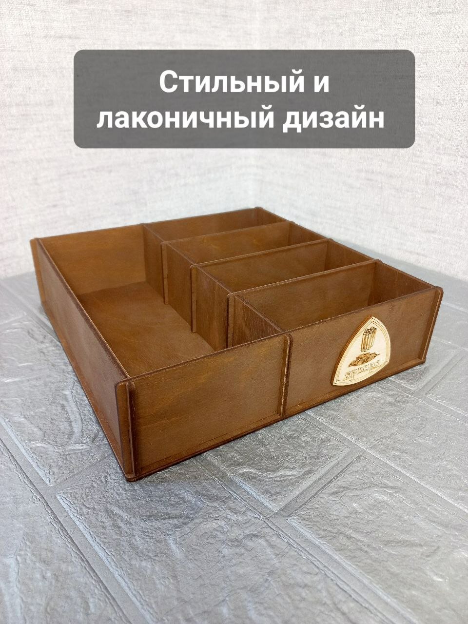 Подставка для специй ЛесВилл, с разделителями, дерево, темно-серая