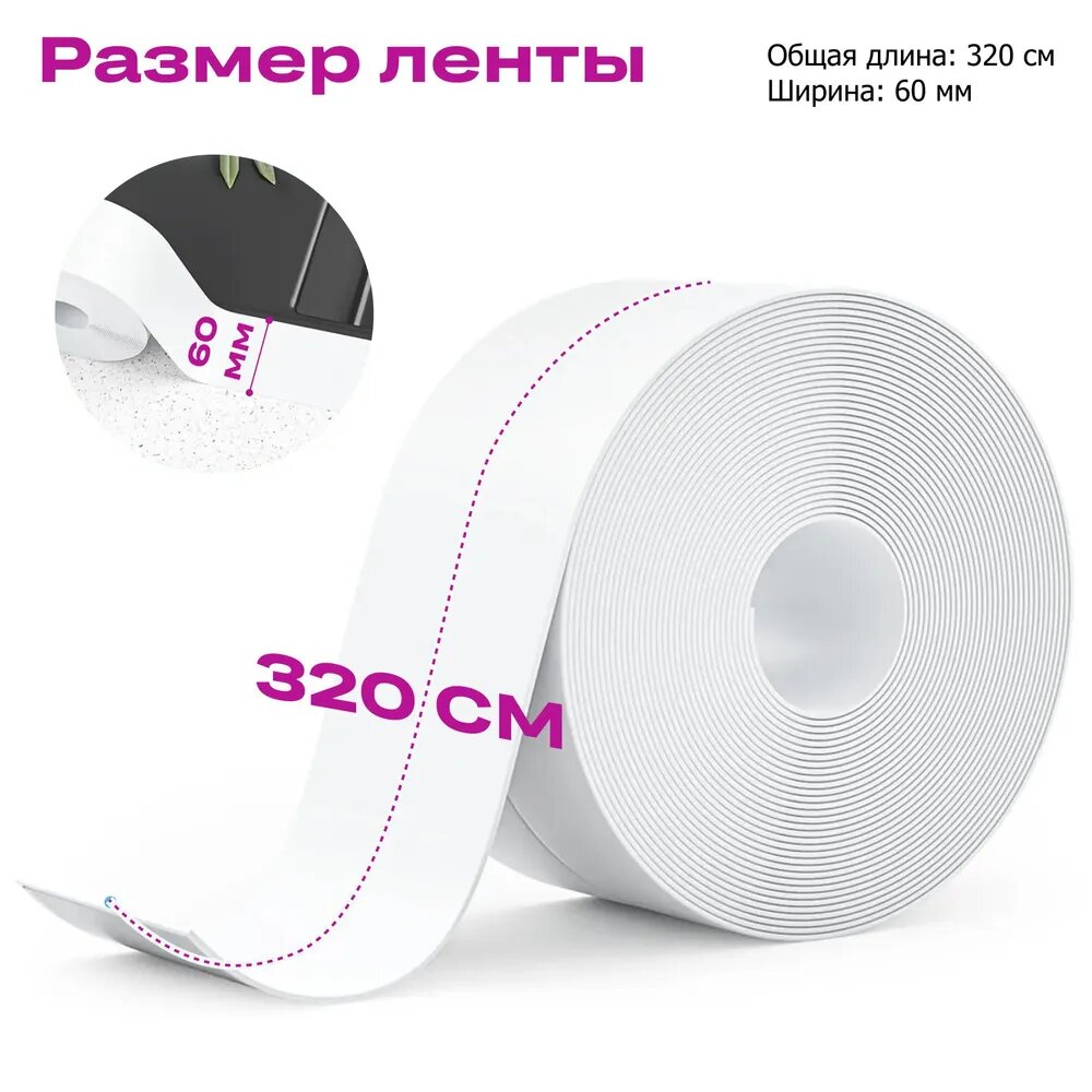 Бордюрная лента самоклеящаяся белая для ванной, кухни, гибкий плинтус, 6х320 см интересное: