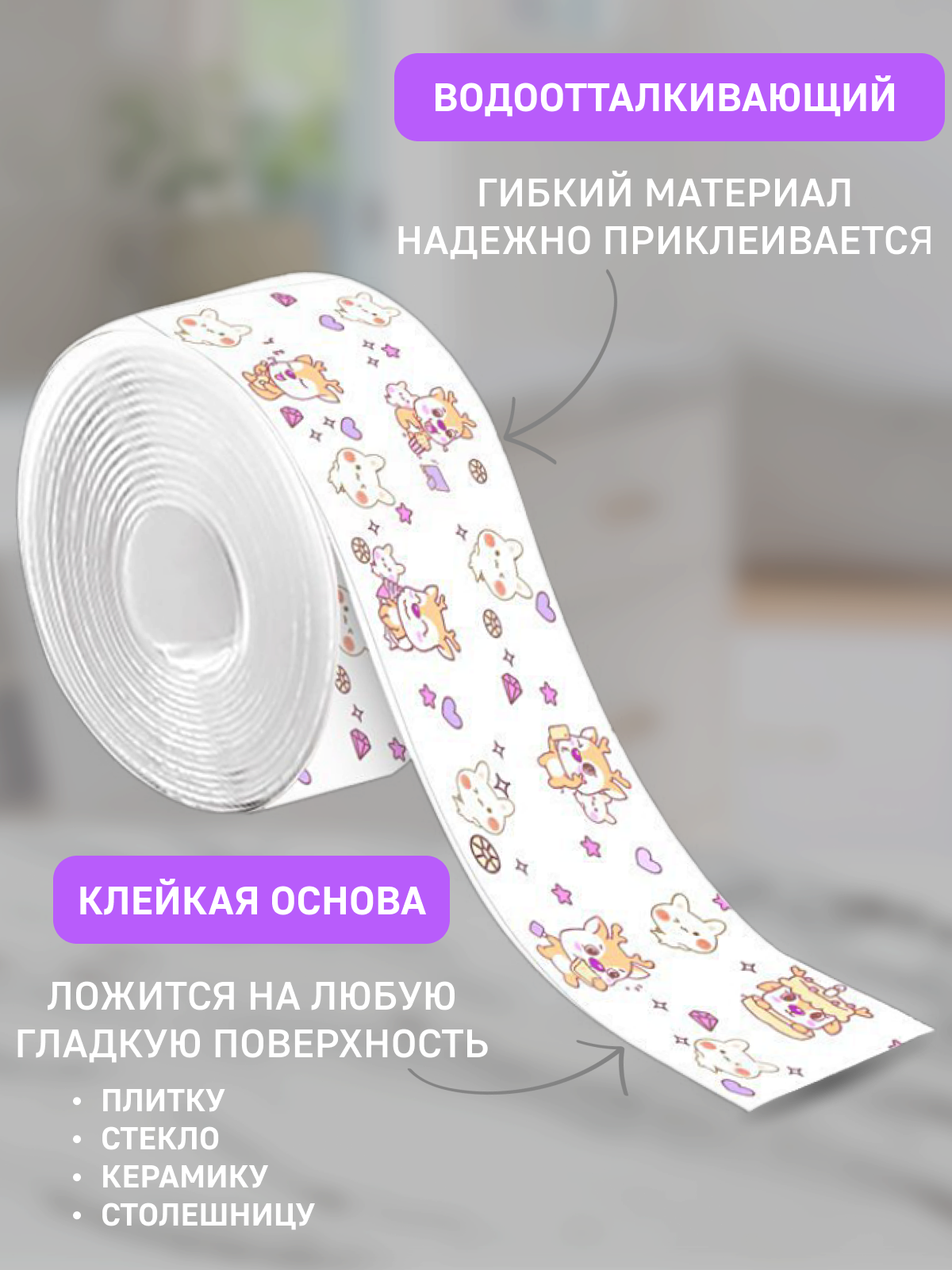 Бордюрная лента для ванны и кухни самоклеящаяся