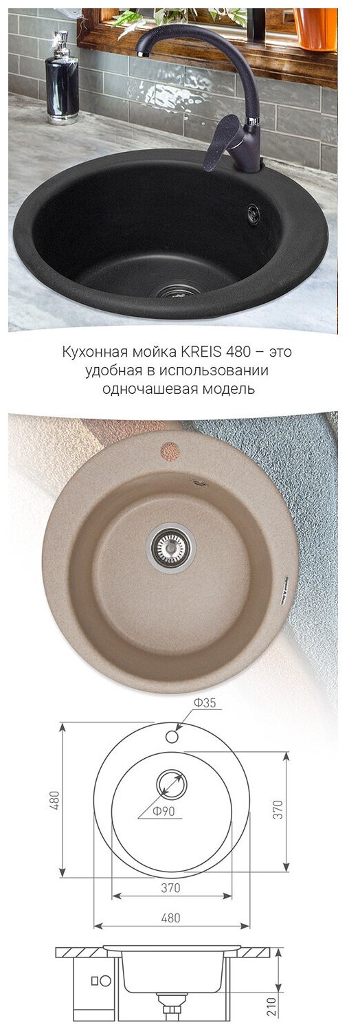 | Отзыв: | диаметр хоть и маленький, но она глубокая. удобно мыть посуду и фрукты, можно все сложить в саму чашу, помещается без проблем. переживала очень, что при транспортировке могут повредить, но искусственный гранит крепким оказался. сейчас уже закончили ремонт на кухне и установили ее, смеситель кстати тоже брали этого же производителя, все сразу в интернет магазине посмотрели и заказали. уже вовсю эксплуатирую.