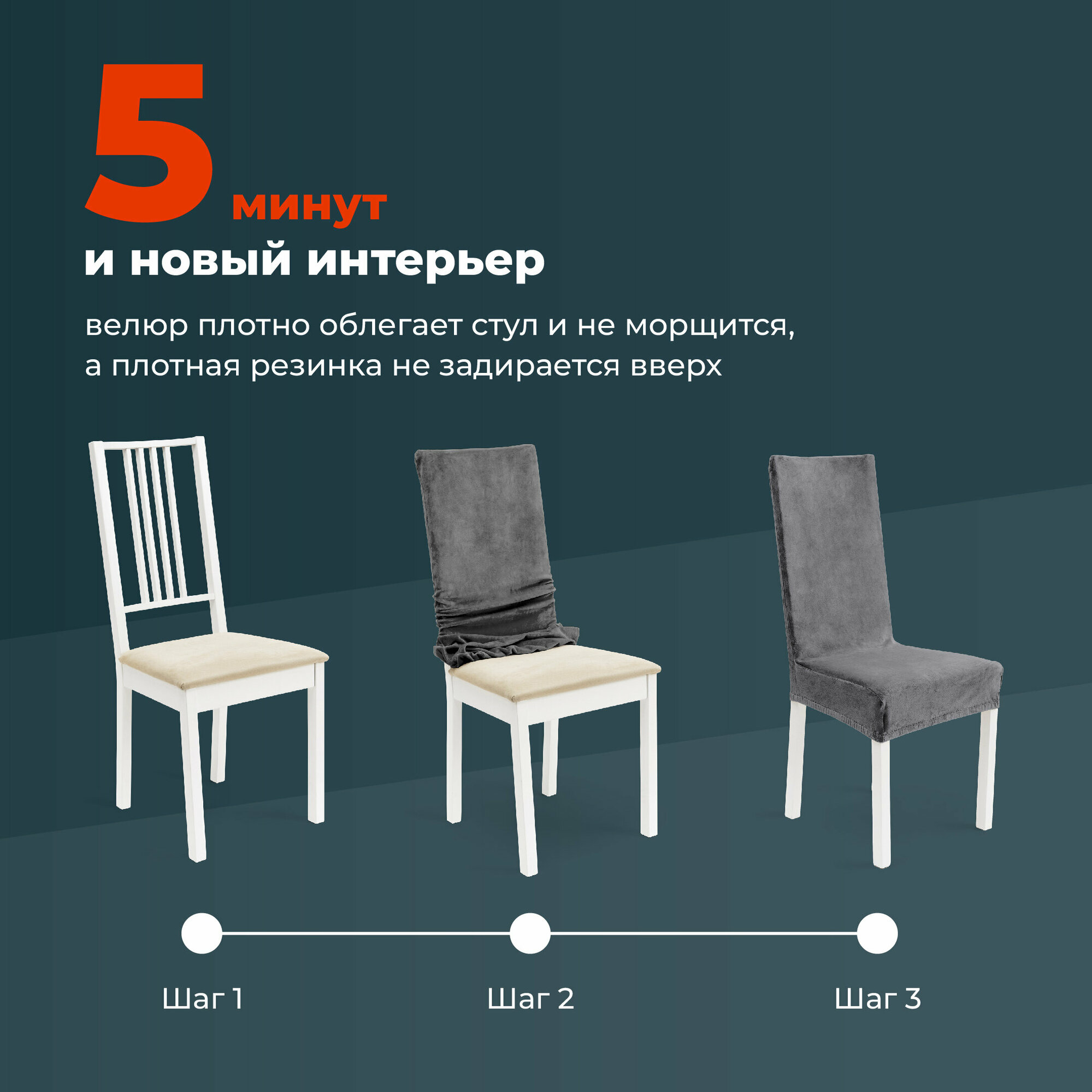 Чехлы на стулья со спинкой для кухни, Birdhouse, Универсальная накидка на стул кухонный, Комплект 4 шт., Темно-серый