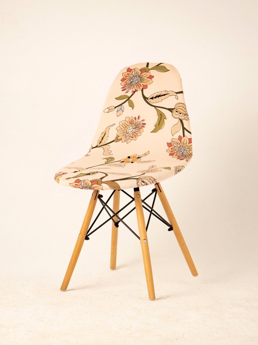 Чехол на стул со спинкой PROtect на модели Eames, Aspen, Giardino, 40х46 см, ткань Jersey Print, Цветочный Орнамент, 1 шт.