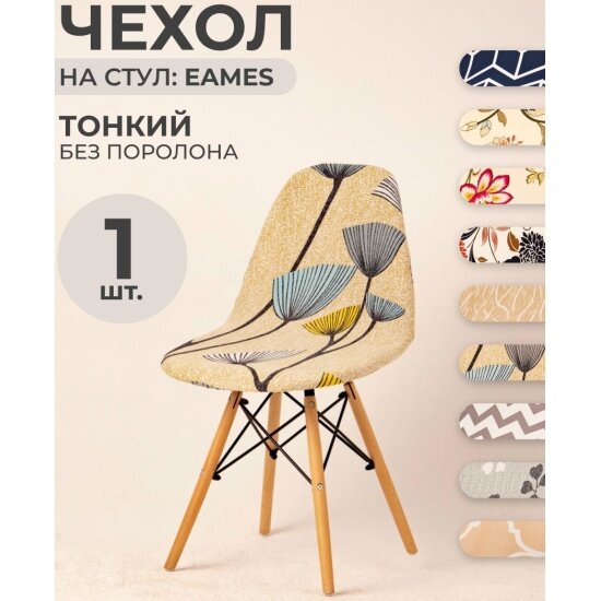 Чехол на стул со спинкой LuxAlto на модели Eames, Aspen, Giardino, 40х46 см, ткань Jersey Print, Одуванчики, 1 шт.