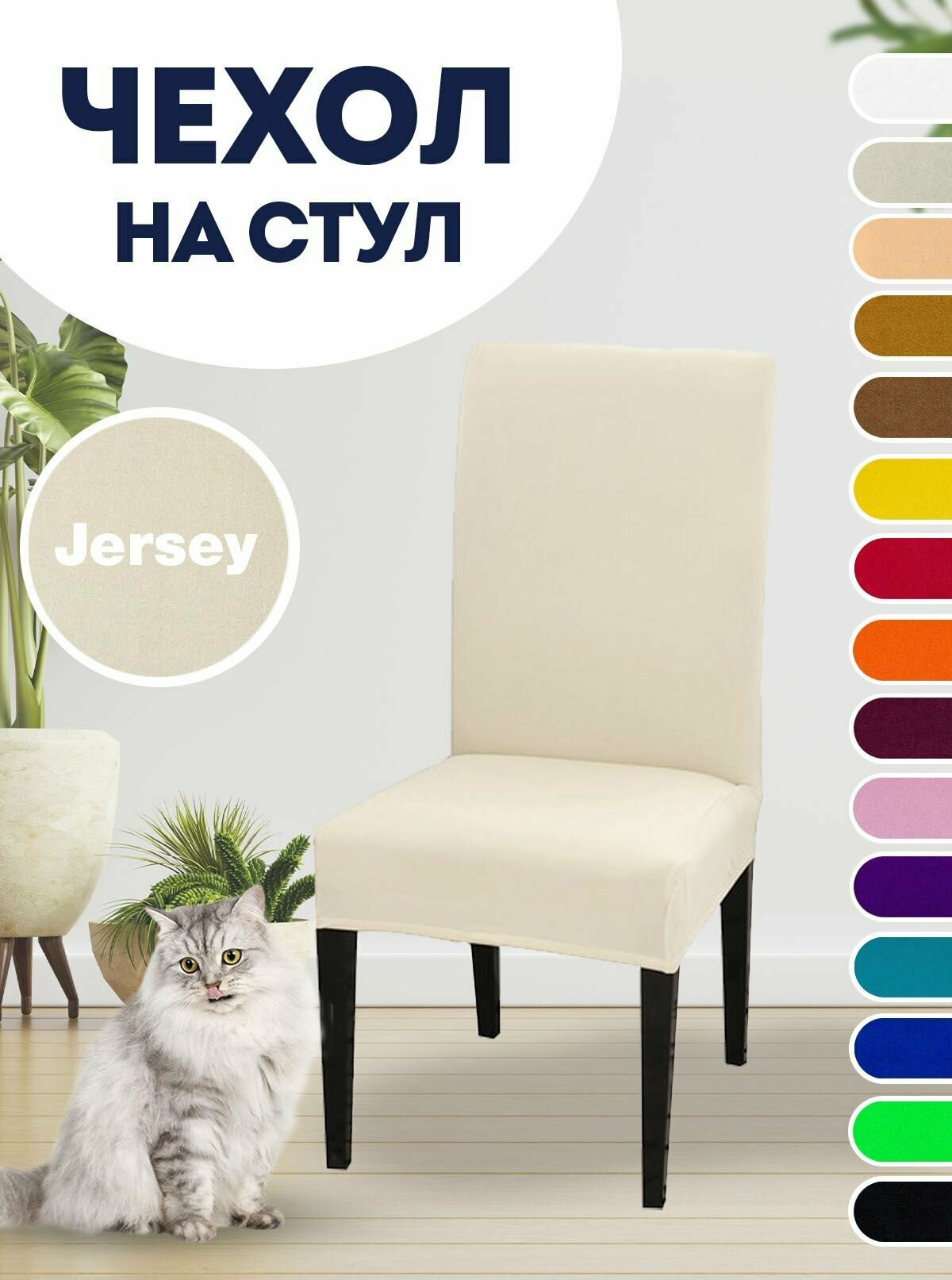 Чехол на стул, чехол для стула со спинкой Jersey Бежевый
