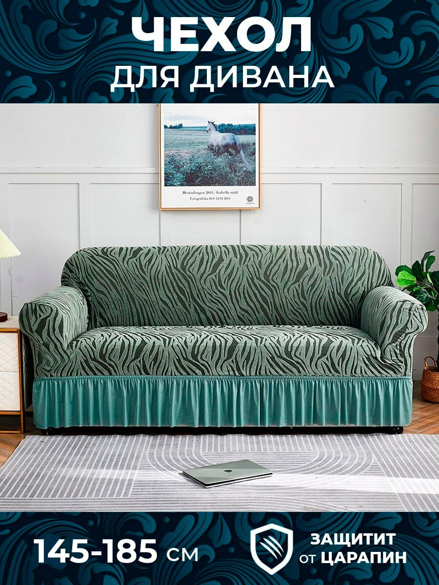 Чехол на 2 местный диван с подлокотниками зеленый интересное: