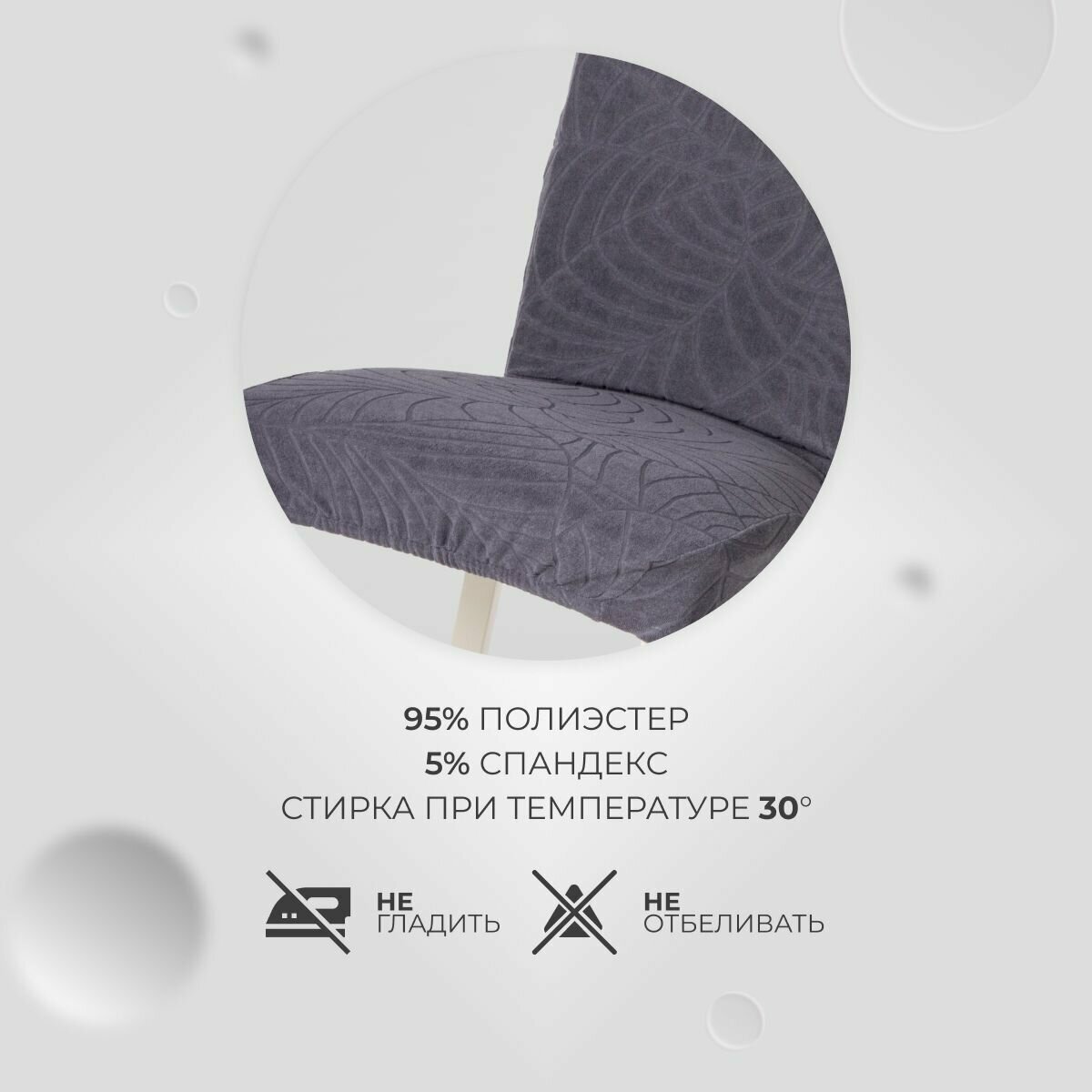 Чехол PROtect на стул со спинкой, ткань Leaves, Серый, 1 штука интересное: