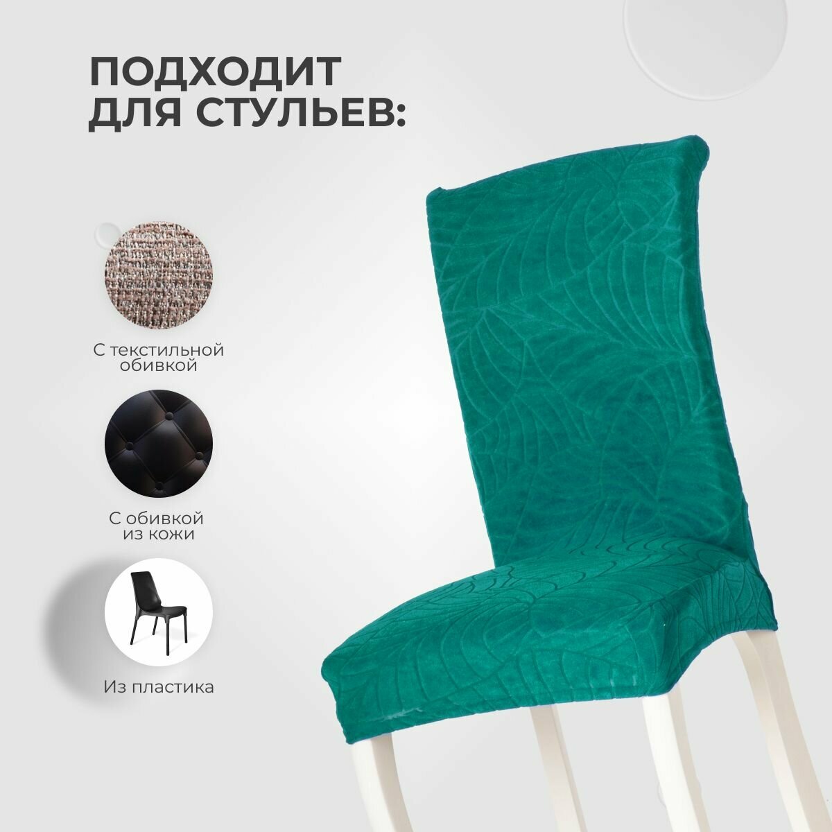 Чехол PROtect на стул со спинкой, ткань Leaves, Малахитовый зеленый, 1 штука интересное: