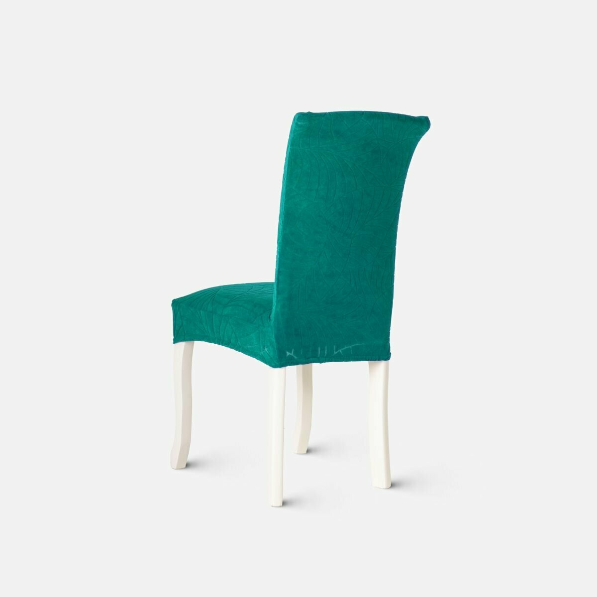 Купить Чехол PROtect на стул со спинкой, ткань Leaves, Малахитовый зеленый, 1 штука