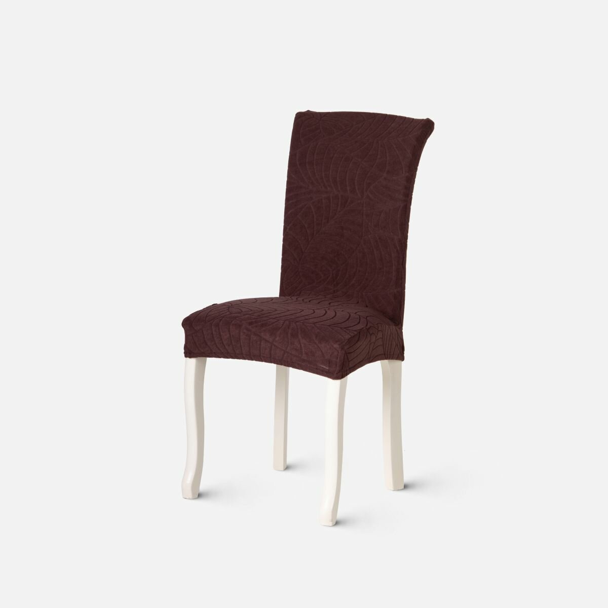 Купить Чехол PROtect на стул со спинкой, ткань Leaves, Темно-коричневый, 1 штука