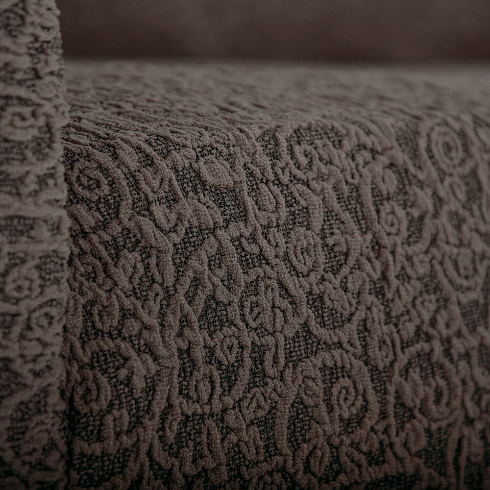Чехол на трехместный диван без оборки с подлокотниками Жаккард, цвет Кофе
