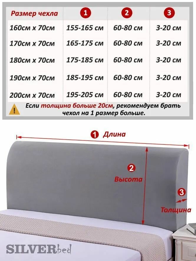 Чехол на изголовье счастливого домма 150/160, серый бархат