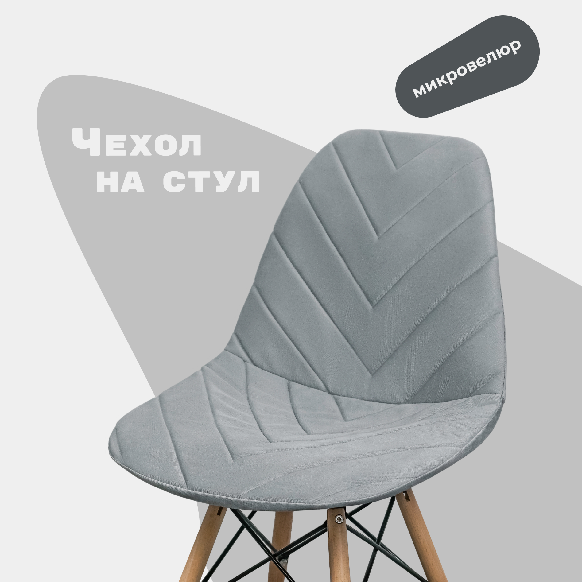 Чехол на стул со спинкой Eames DSW из микровелюра, светло-серый, 40х46см интересное: