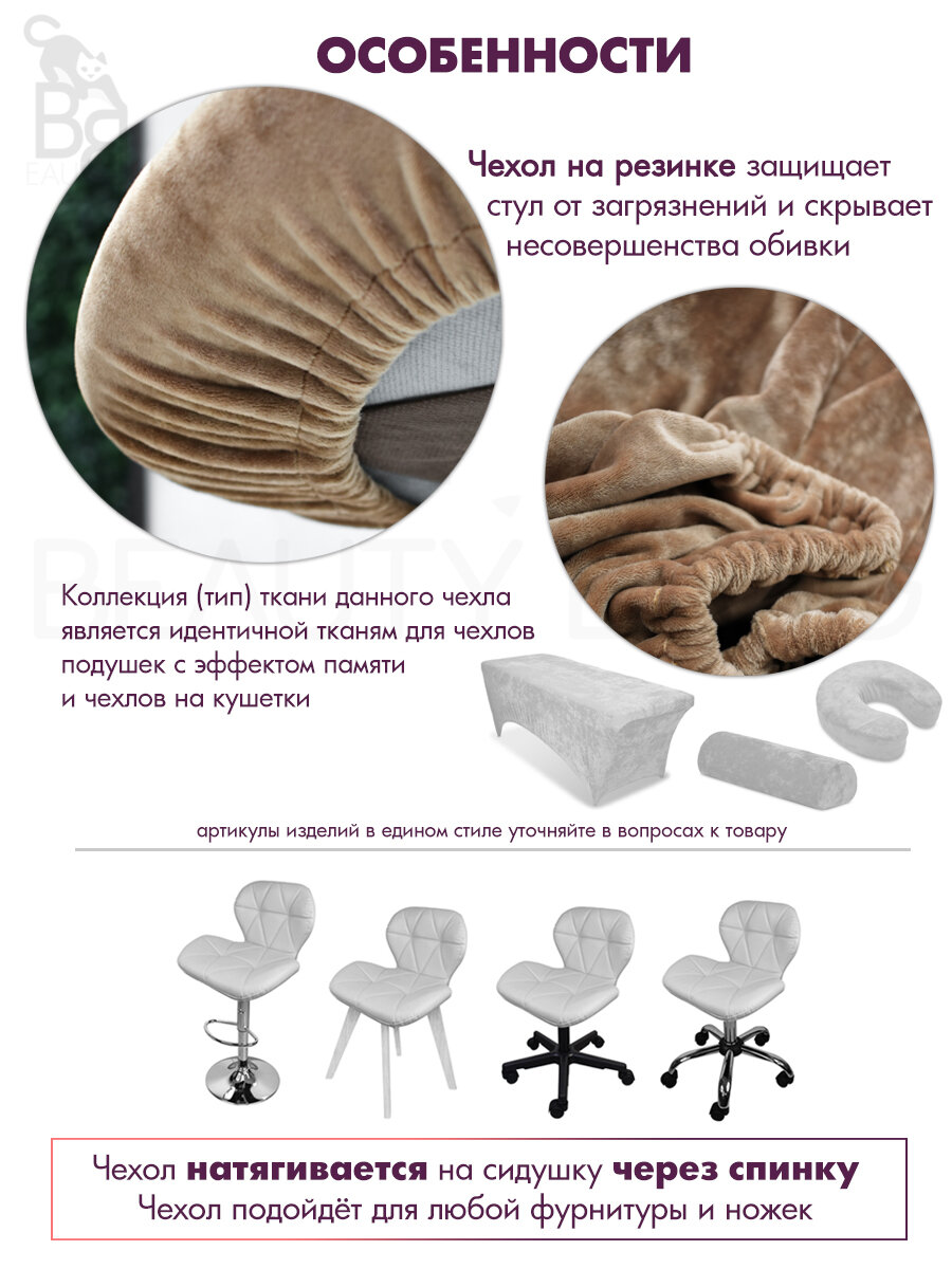 Чехол на стул "Ракушка", чехол защитный велюровый на резинке, мокко