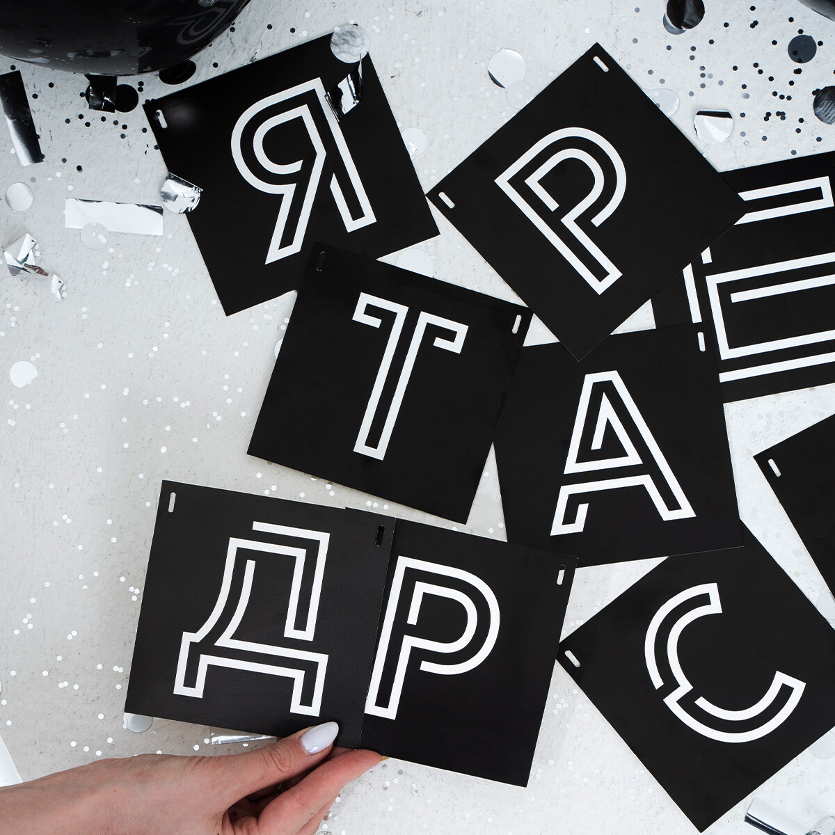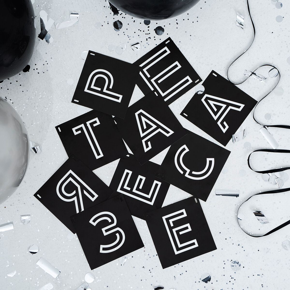 Гирлядна из букв "сладкая булочка" растяжка черные буквы