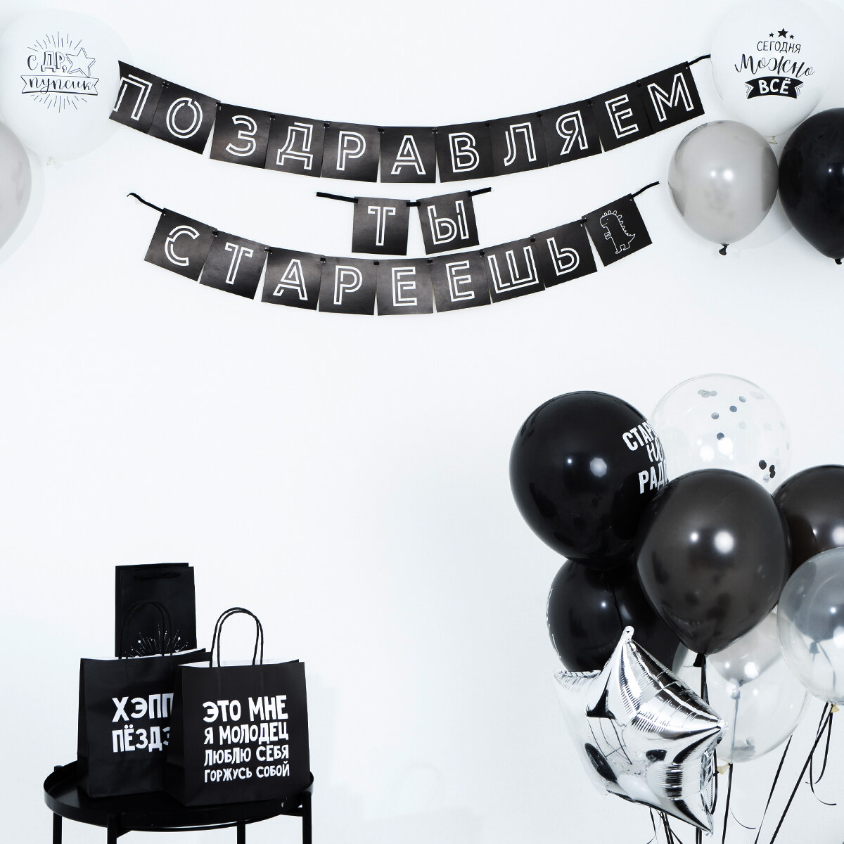 Ниже Вы можете прочитать отзывы на Гирлянда растяжка на ленте с приколом "Поздравляем, ты стареешь", длина 300 см, ознакомится с подробными характеристиками, посмотреть интересные обзоры и фотографии на Гирлянда растяжка на ленте с приколом "Поздравляем, ты стареешь", длина 300 см.