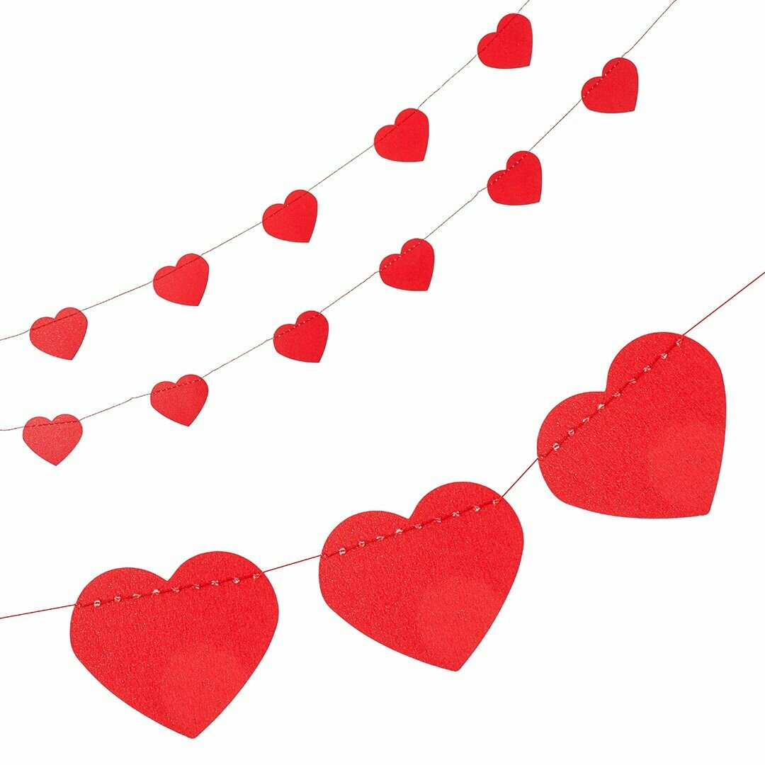 Гирлянда-подвеска Сердце, фетр, Красный, 200 см, 10 см*10 шт, 1 упак.