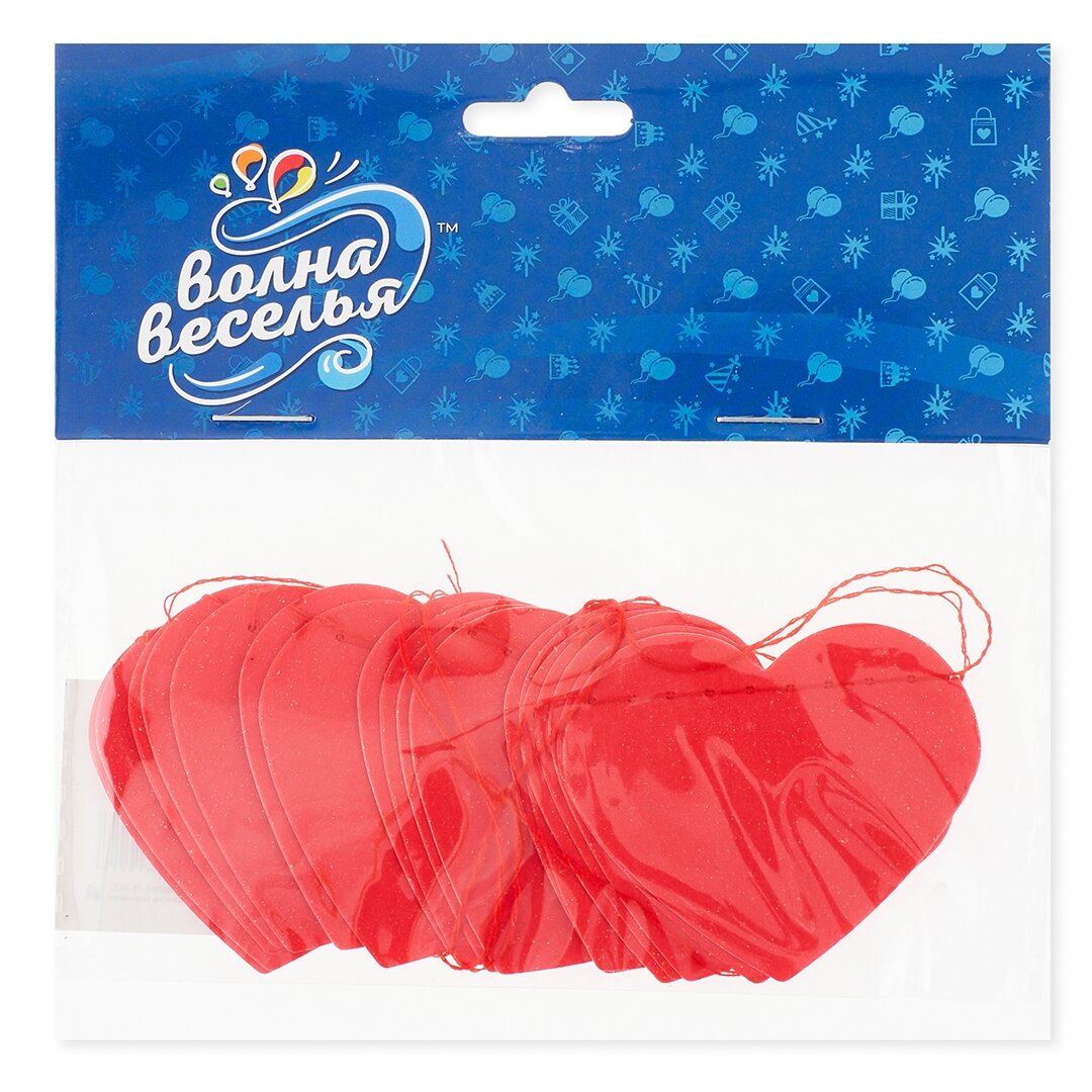 Купить Гирлянда-подвеска Сердце, Мини, Красный, с блестками, 200 см, 5 см*18 шт, 1 упак.