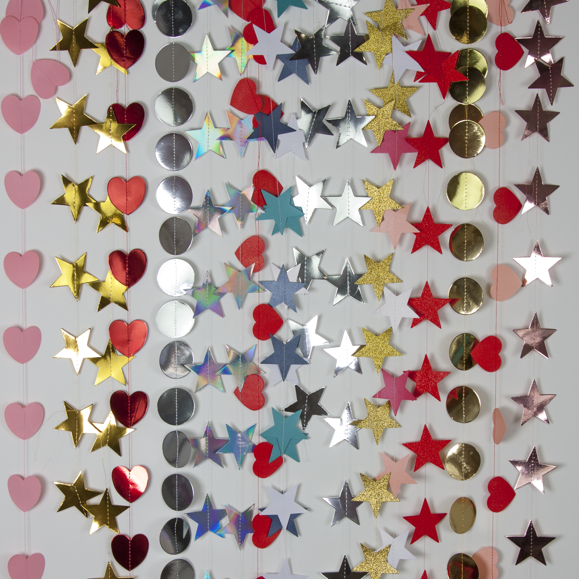 Гирлянда-подвеска Сердце, Розовый микс, с блестками, 180 см, 1 шт.