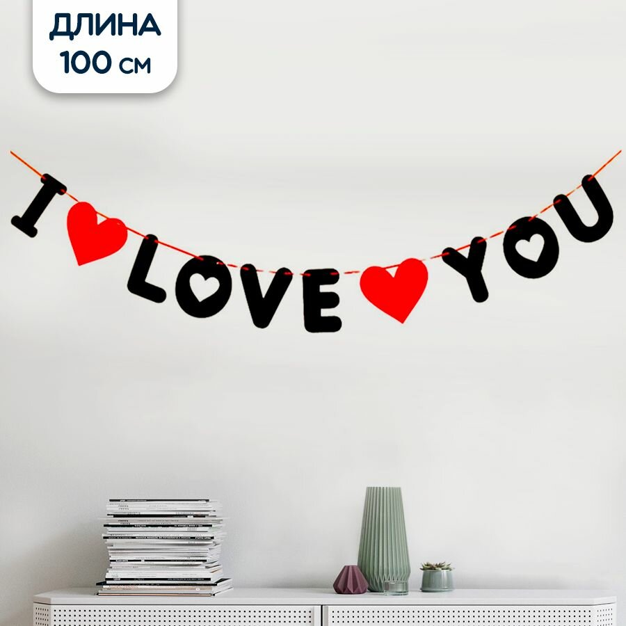 СохранитьГирлянда - растяжка из фетра, I love you (сердца), 100 см, 16*12 см, 1 шт. интересное: