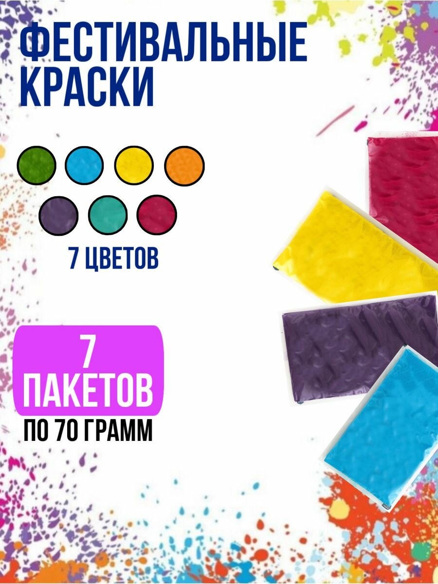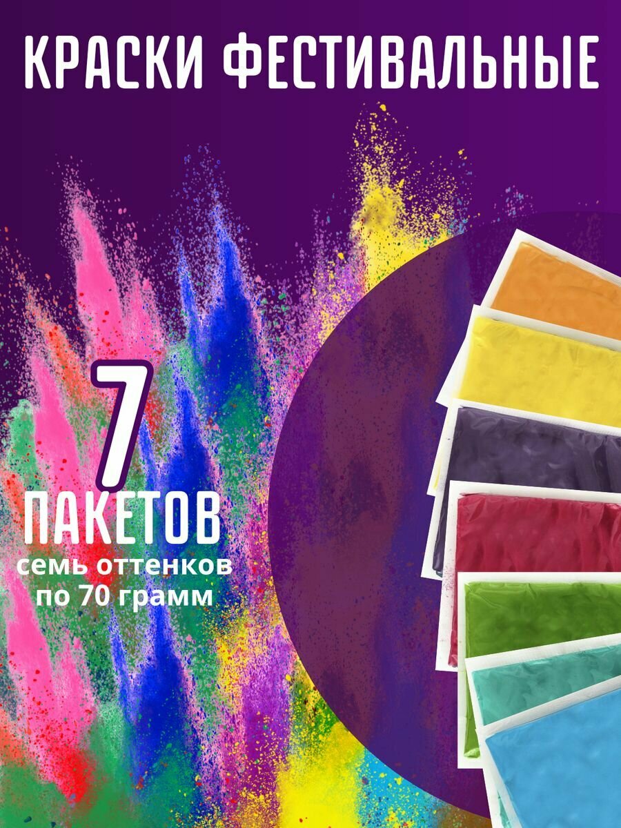 Краски холи набор 7 по 70 грамм для праздника гендер пати фотосессий интересное: