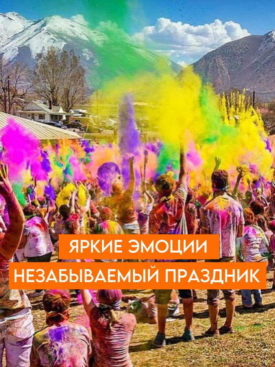 | Дополнительная информация | Фасовка по 70 г в прозрачные полиэтиленовые пакеты. Назначение: окрашивание в яркие цвета участников фестивалей, карнавалов, праздников, фото-сессий. Применение: нанесите краску на кожу и одежду или подбросьте в воздух. |