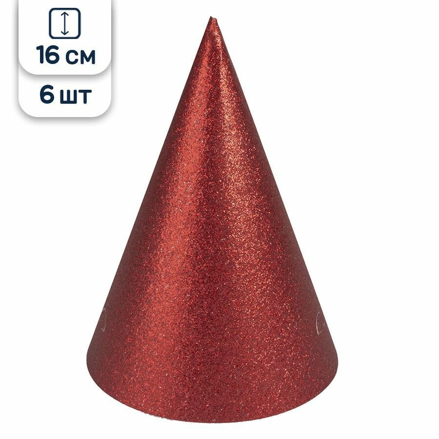 Колпаки, Красный, с блестками, 16 см, 6 шт.