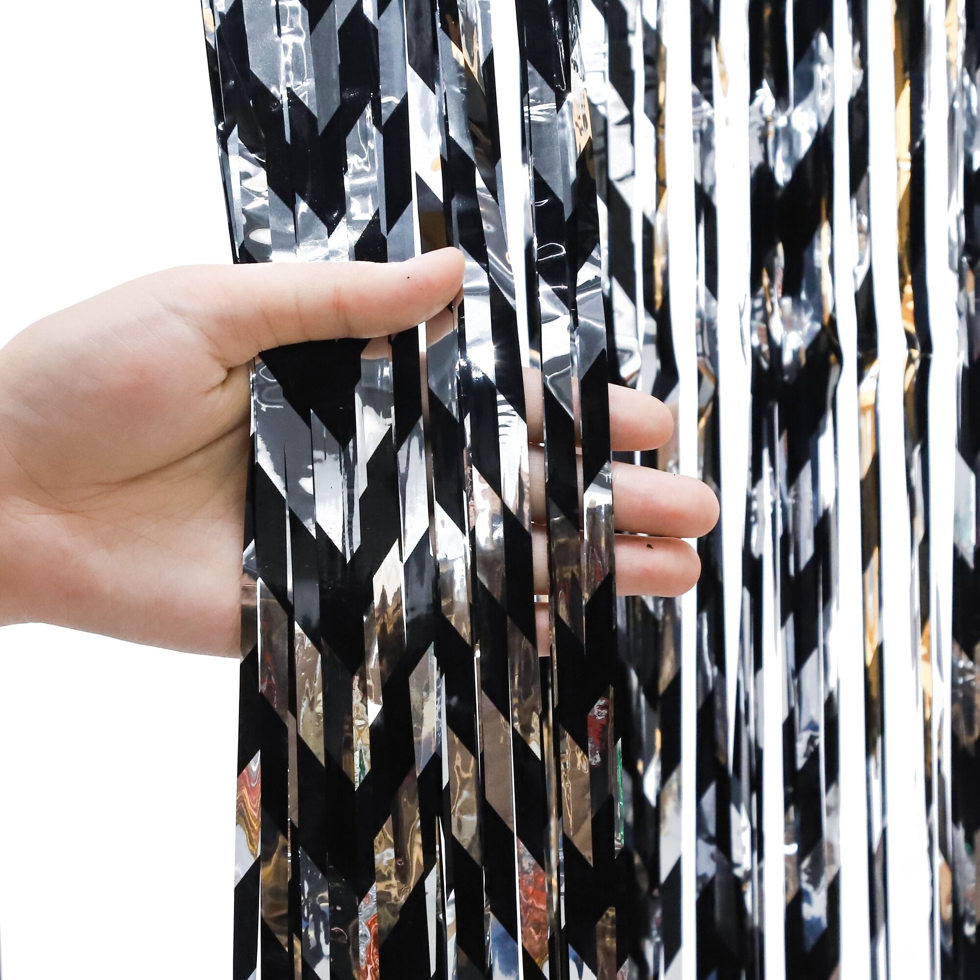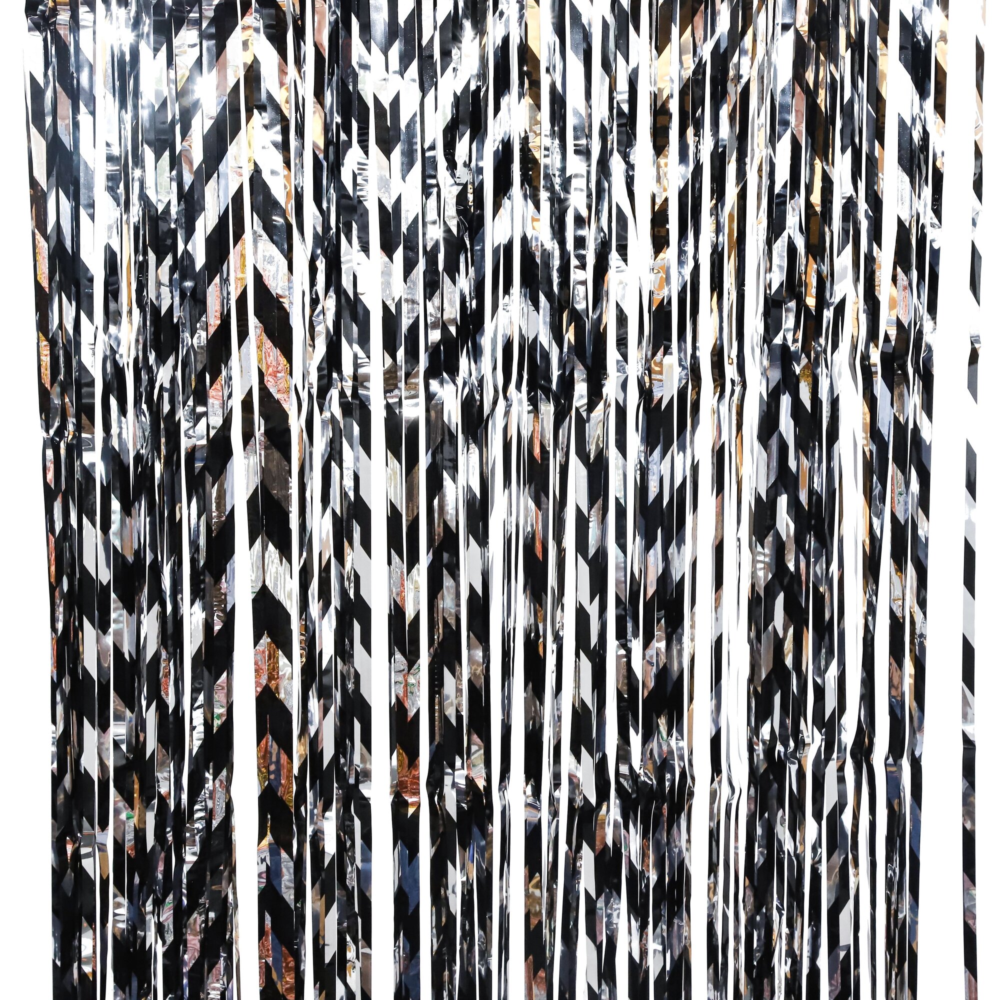 Купить Занавес Дождик Зигзаги, Черный/Серебро, Металлик, 100*200 см, 1 шт.