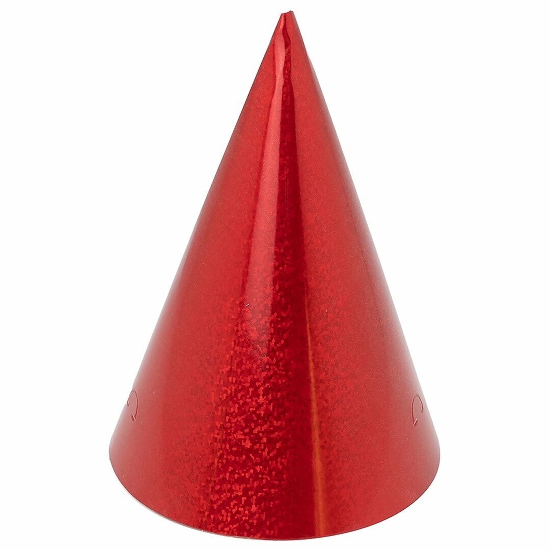 Праздничные колпаки картонные Riota с блестками, красный, 16 см, 6 шт