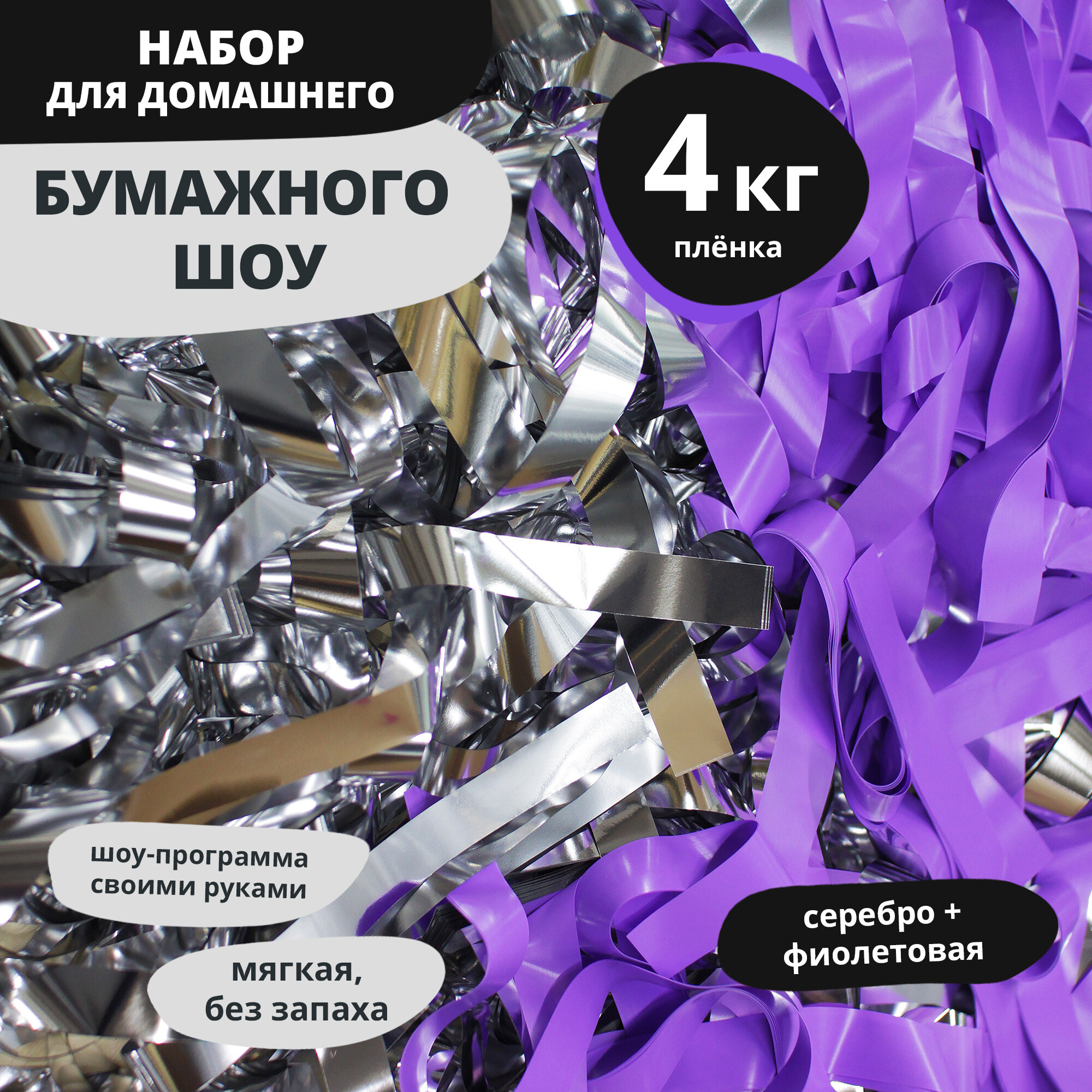 Купить Серебряное Шоу "Серебряная + Фиолетовая плёнка" 4 кг для дискотеки / Бумага для бумажного шоу / Бумажная дискотека