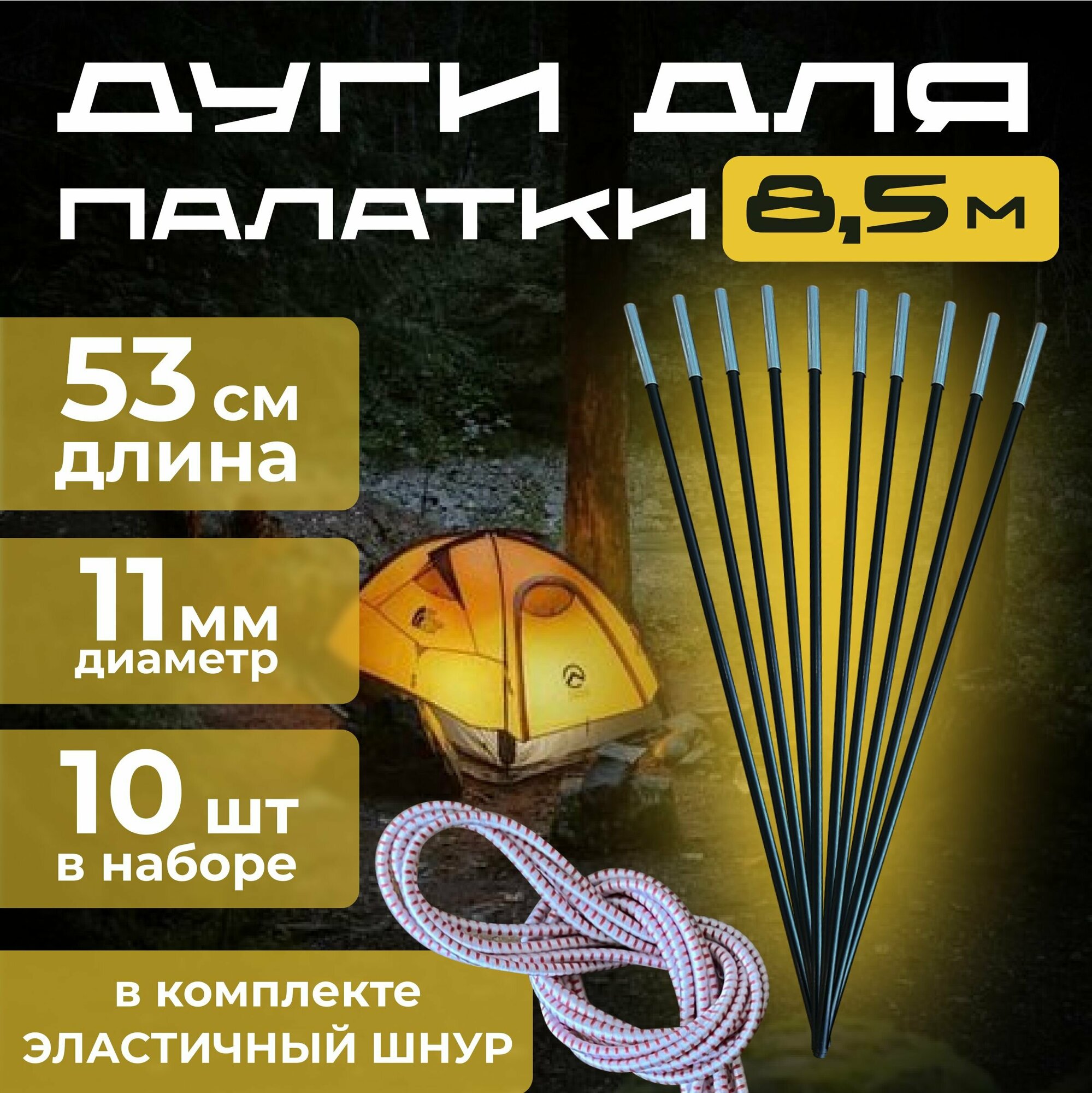 Дуги для палатки 8.5 мм 10шт ( фиберглас )+ эластичный шнур / Сегменты дуг для палатки интересное: