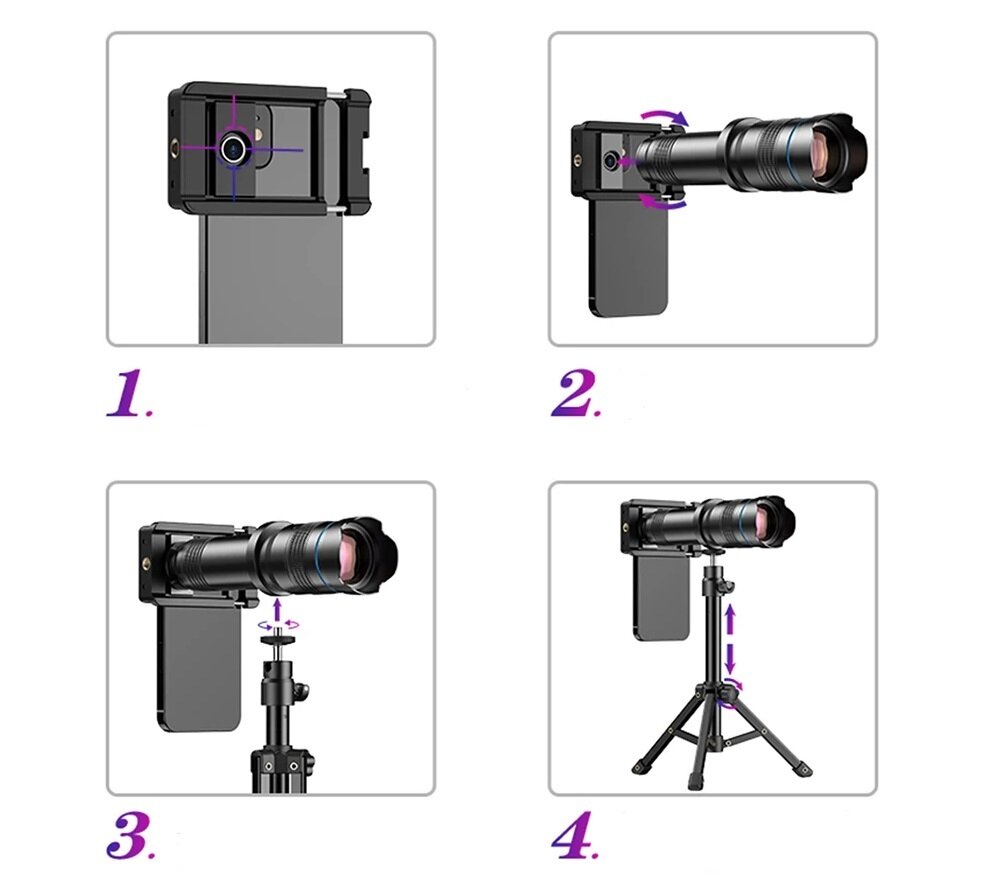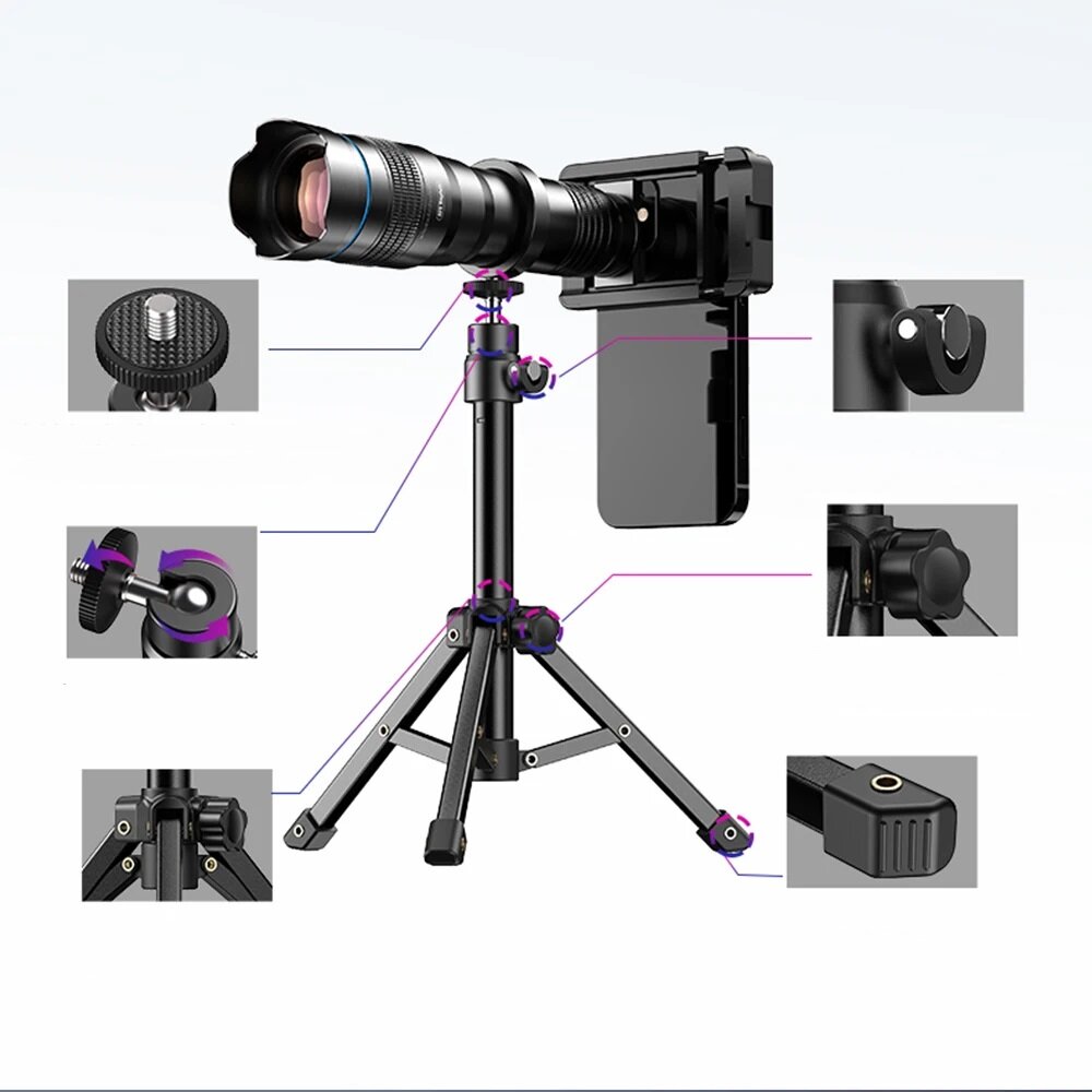Купить Телеобъектив 36x для смартфона со штативом и универсальным креплением