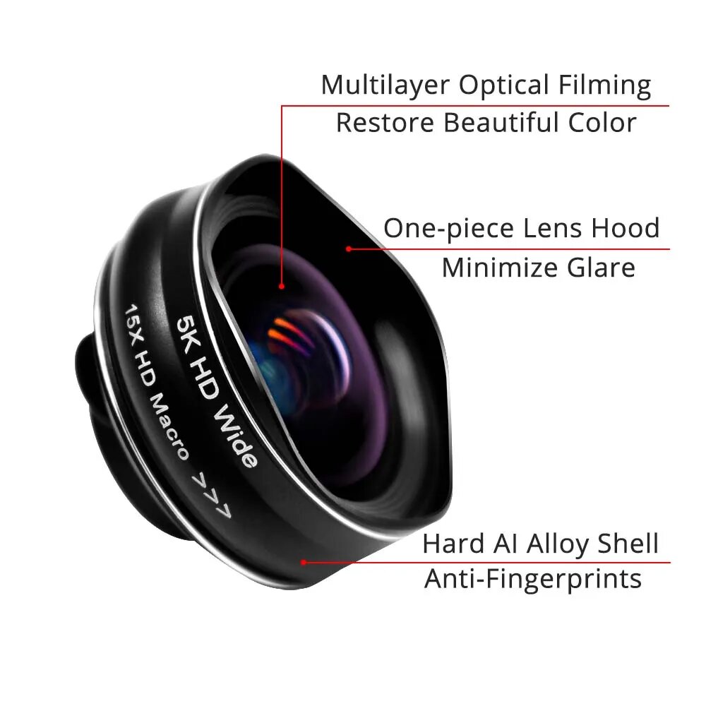 Широкоугольный макрообъектив-линза для телефона 2 в 1, 0.45Х, 37 мм, черный