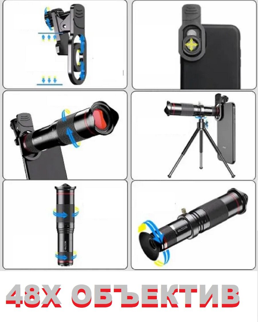 Ниже Вы можете прочитать отзывы на Мощный монокулярный объектив для смартфонов 48X Telephoto Lens с кнопкой Bluetooth, ознакомится с подробными характеристиками, посмотреть интересные обзоры и фотографии на Мощный монокулярный объектив для смартфонов 48X Telephoto Lens с кнопкой Bluetooth.
