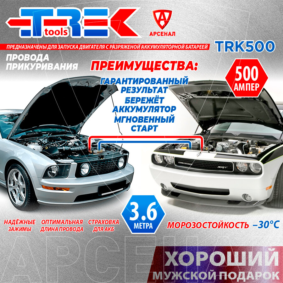 Провода прикуривания 500А, длина 3,6 м. с зажимами (в сумке) Trek, TRK500 интересное: