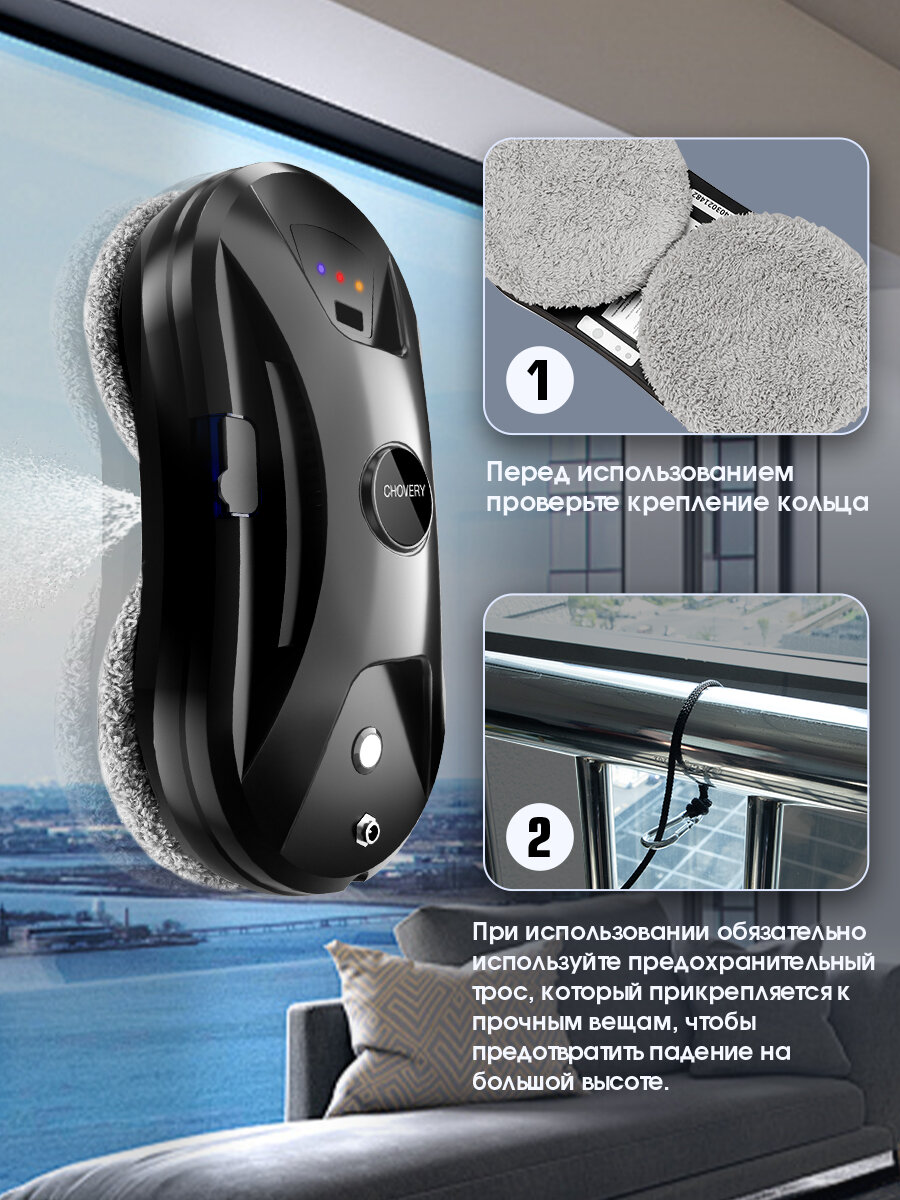 СохранитьРобот мойщик окон с распылением CL-2,Робот для мойки окон со Мобильное приложение сменными +салфетками 10 шт,черный интересное: