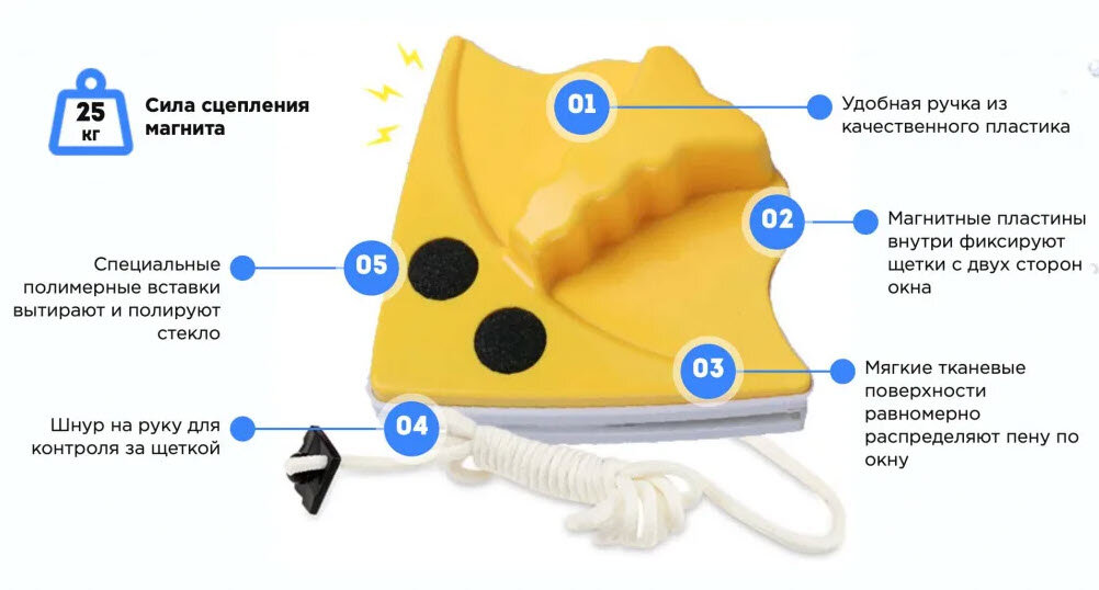 Магнитный стеклоочиститель Double Sided Glass интересное: