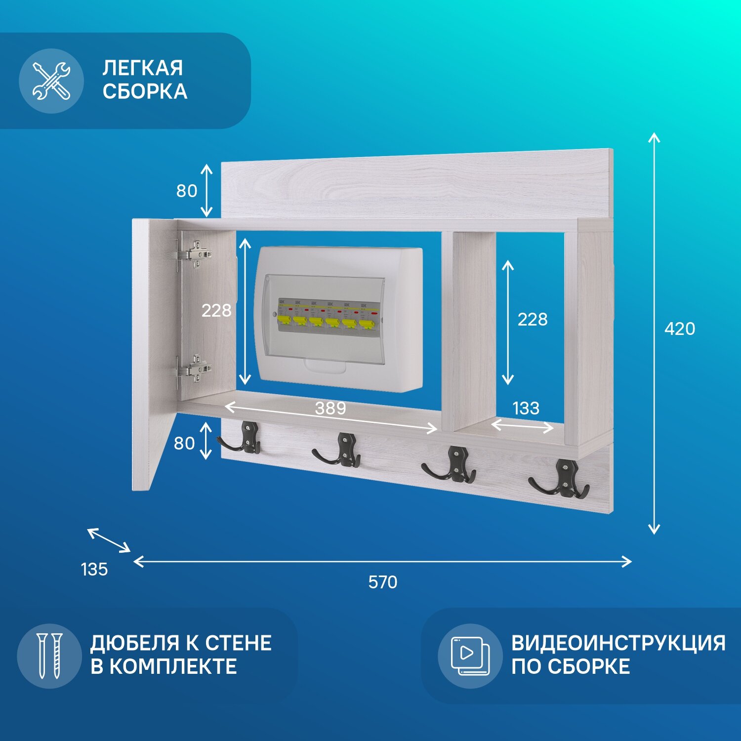 Ключница настенная на электрический щиток Ясень анкор светлый интересное: