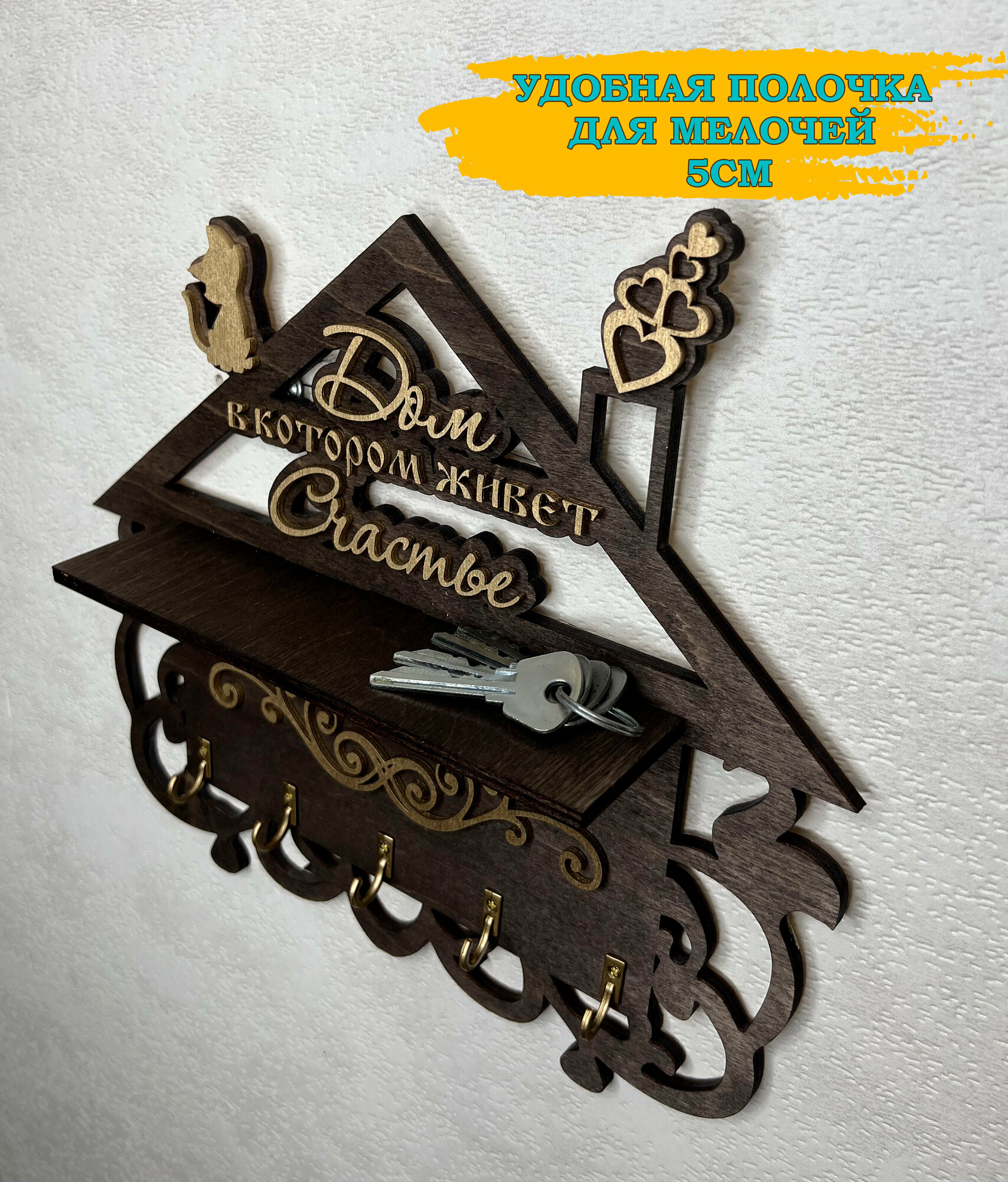 Деревянная ключница настенная с полкой в прихожую интересное: