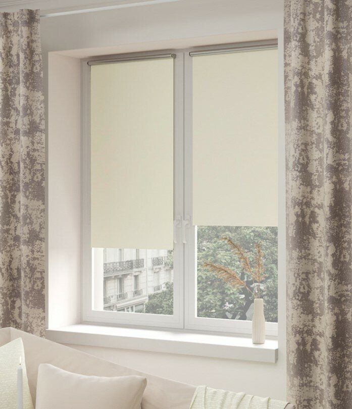 Рулонная штора блэкаут сильвер DOMLEGRAND 47 на 175 ваниль / Рулонные шторы на окна блэкаут / Жалюзи на окна / Шторы блэкаут