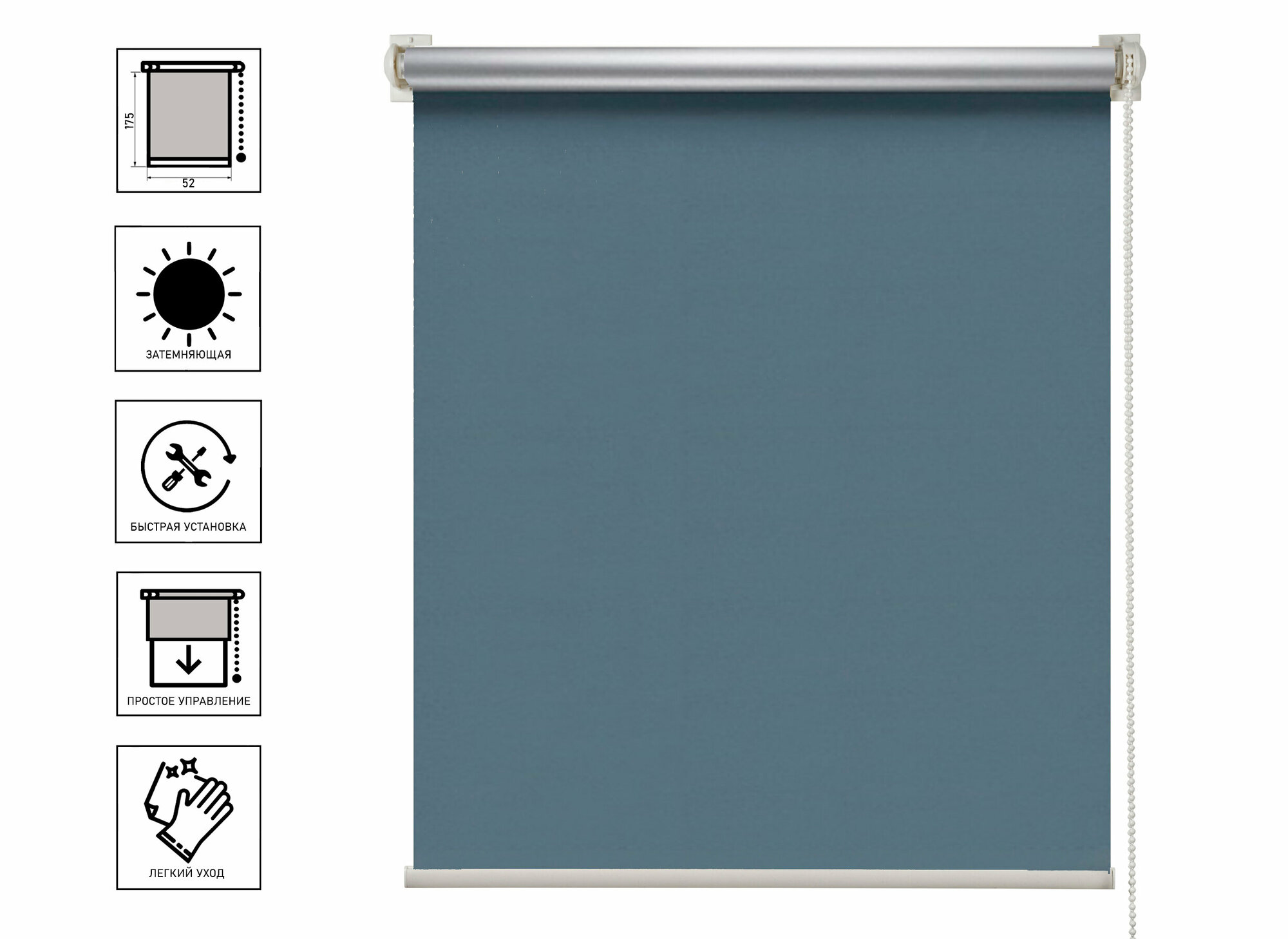 Купить Рулонные шторы Блэкаут однотонные сильвер DOMLEGRAND 52 на 175 синий / Рулонные шторы на окна блэкаут / Жалюзи на окна / Шторы блэкаут