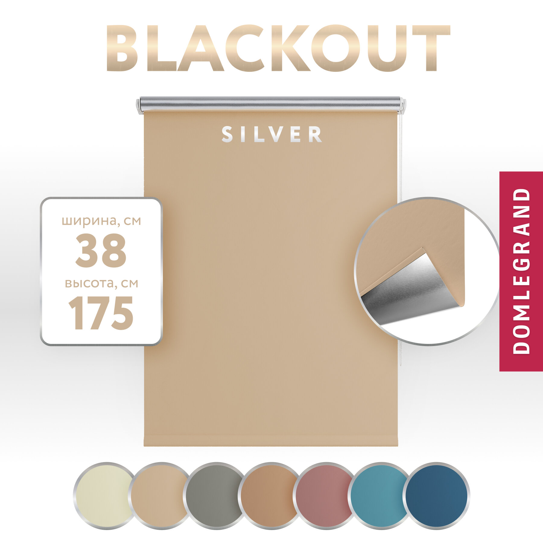 Купить Рулонная штора блэкаут сильвер DOMLEGRAND 38 на 175 бежевый / Рулонные шторы на окна блэкаут / Жалюзи на окна / Шторы блэкаут