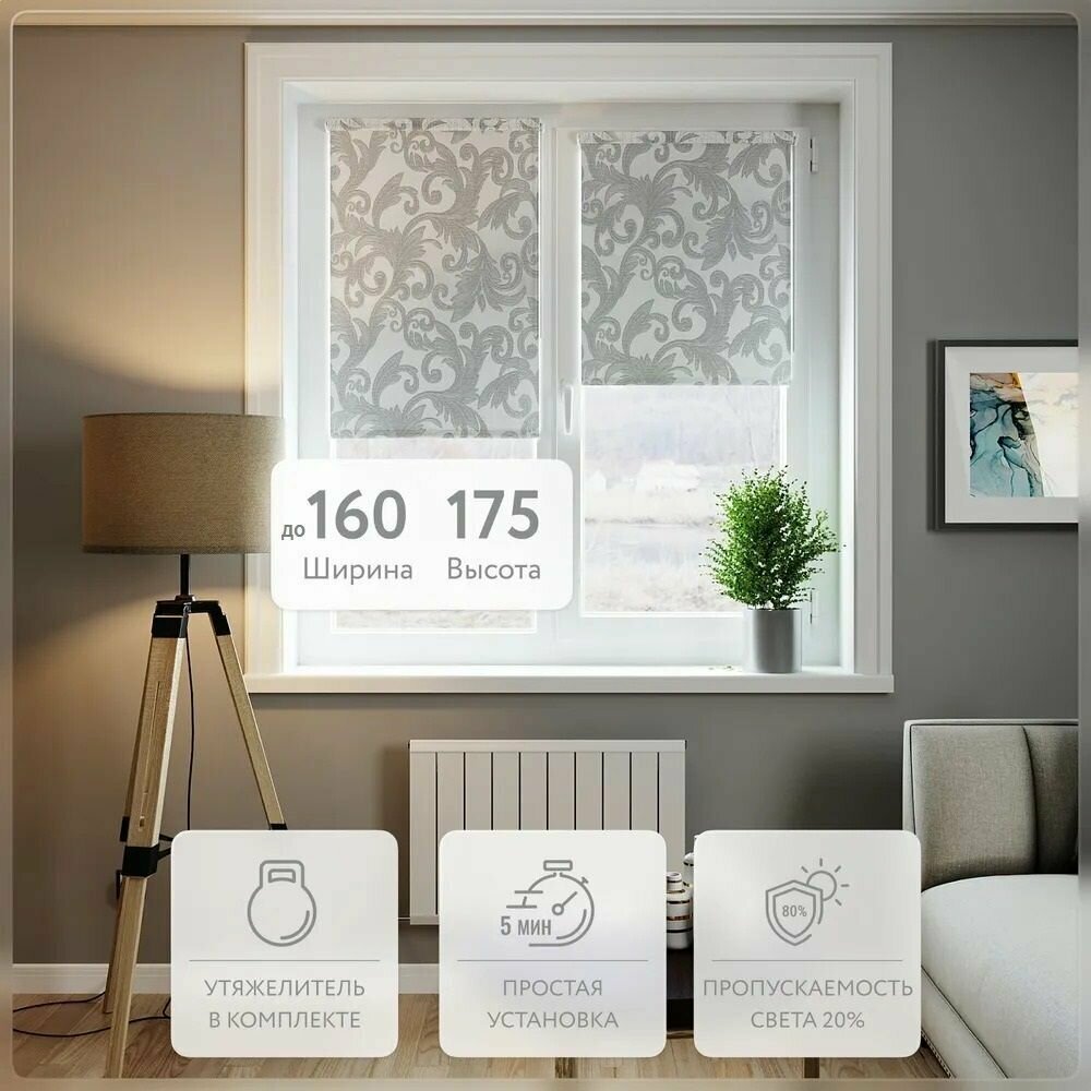 Рулонная штора LEGRAND севилия 72,5 на 175 серебро / Рулонные шторы на окна не блэкаут / Жалюзи на окна / Шторы не блэкаут