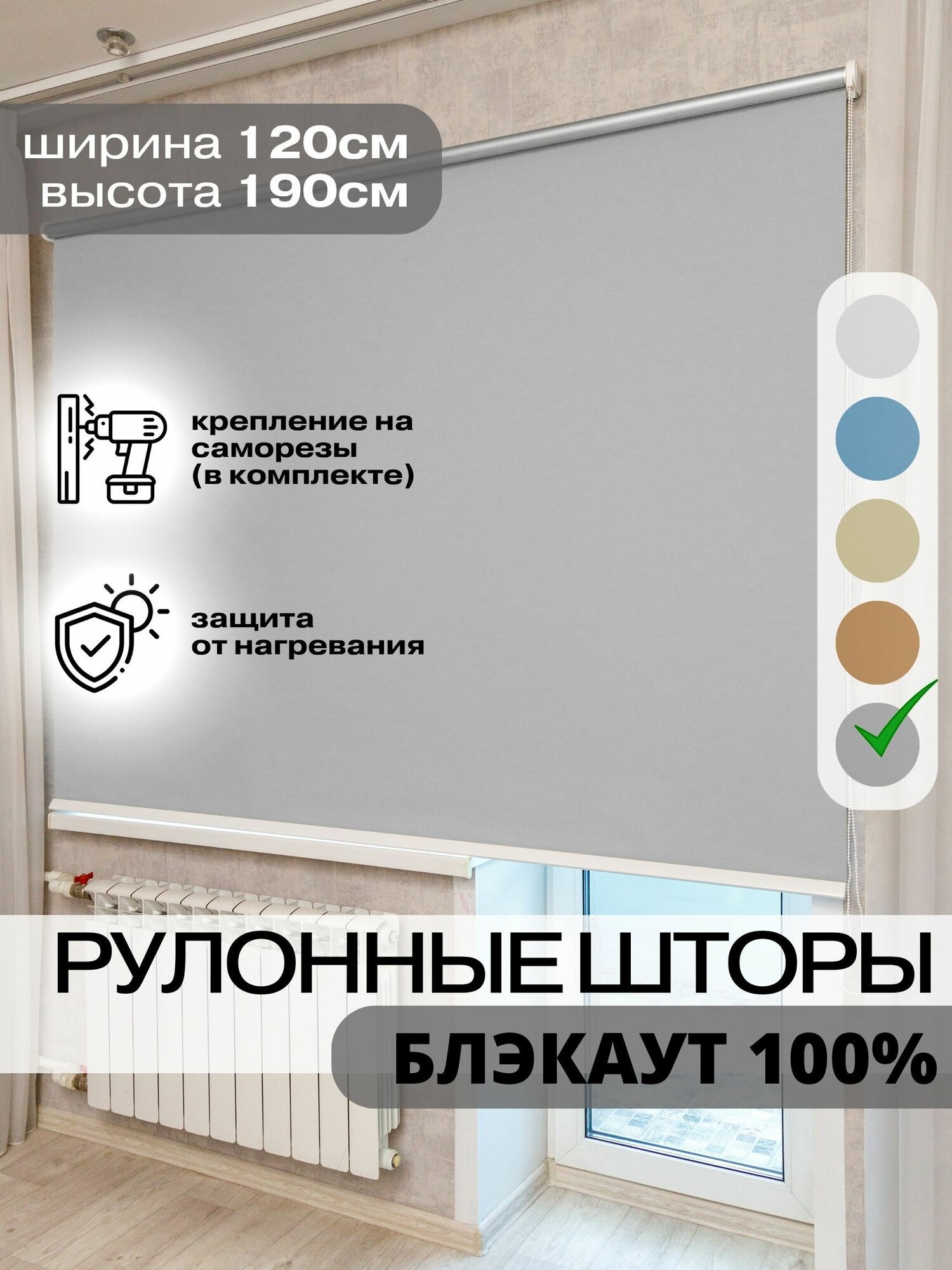 СохранитьРулонные шторы блэкаут 120х190 см Roll Life серые светоотражающие интересное: