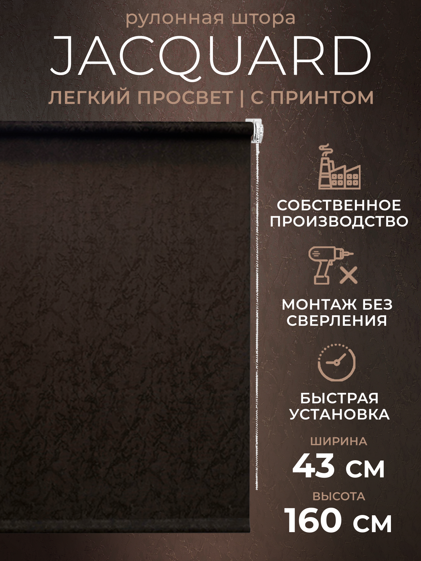 СохранитьРулонные шторы LM DECOR "Жаккард" 28 Темно-шоколадный 43х160 см интересное: