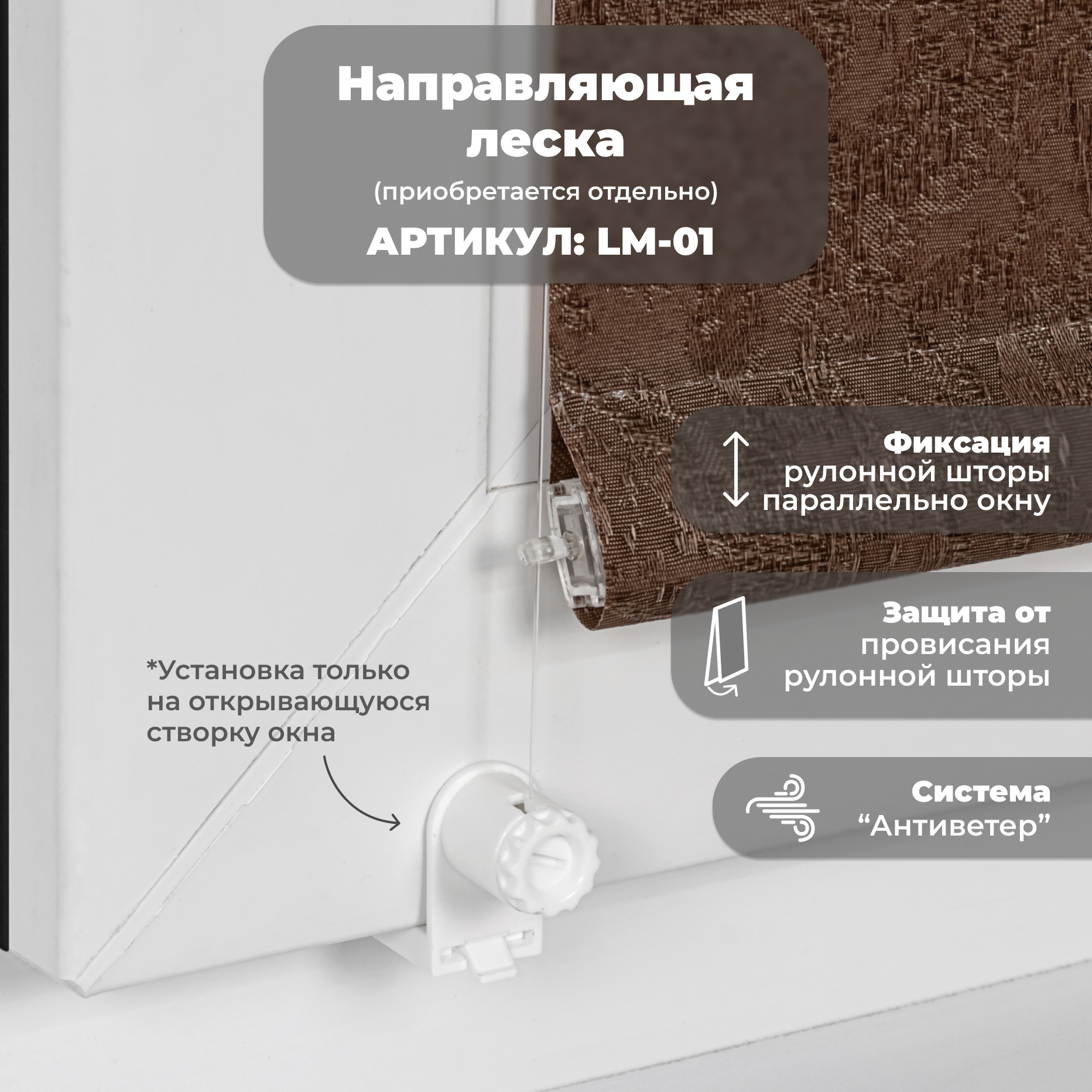 | Дополнительная информация | Несколько вариантов установки: без сверления на пластиковое глухое окно или с поворотно-откидным механизмом; со сверлением - на любое окно, на неподвижную раму, на стену (оконный проем), на раму, к потолку, в проем. |
